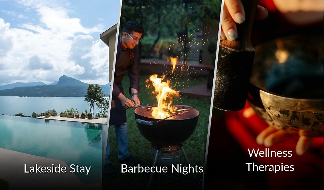 Enjoy a tranquil retreat at this earthy-toned villa with views of the Sahyadris and the peaceful Pawna Lake. More