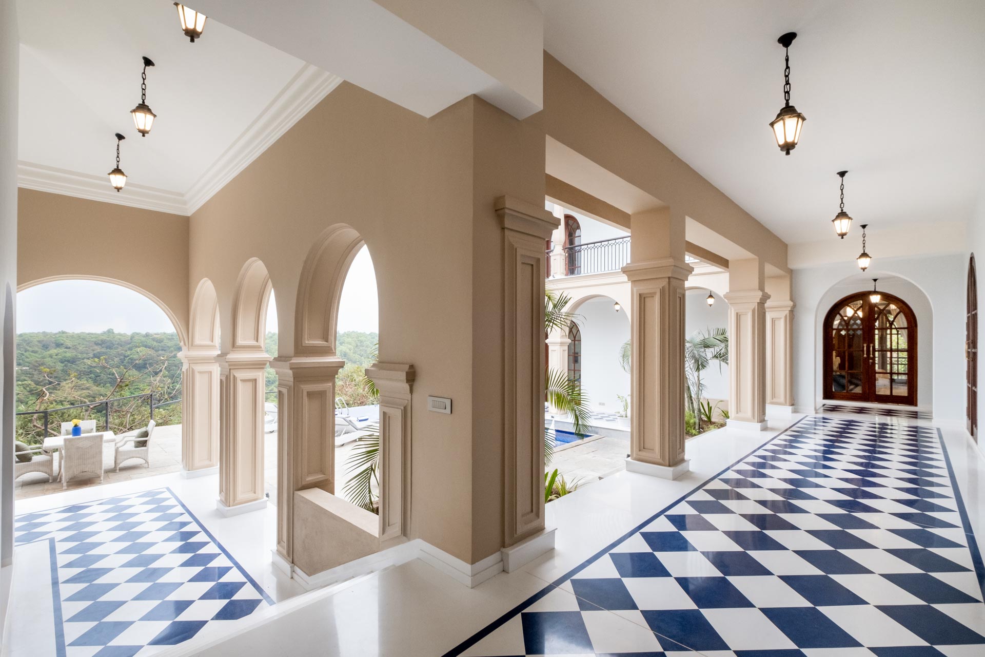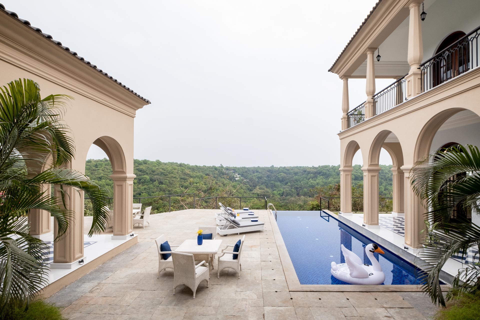 Revel in the charms of this villa with lush gardens, grand archways & sea views