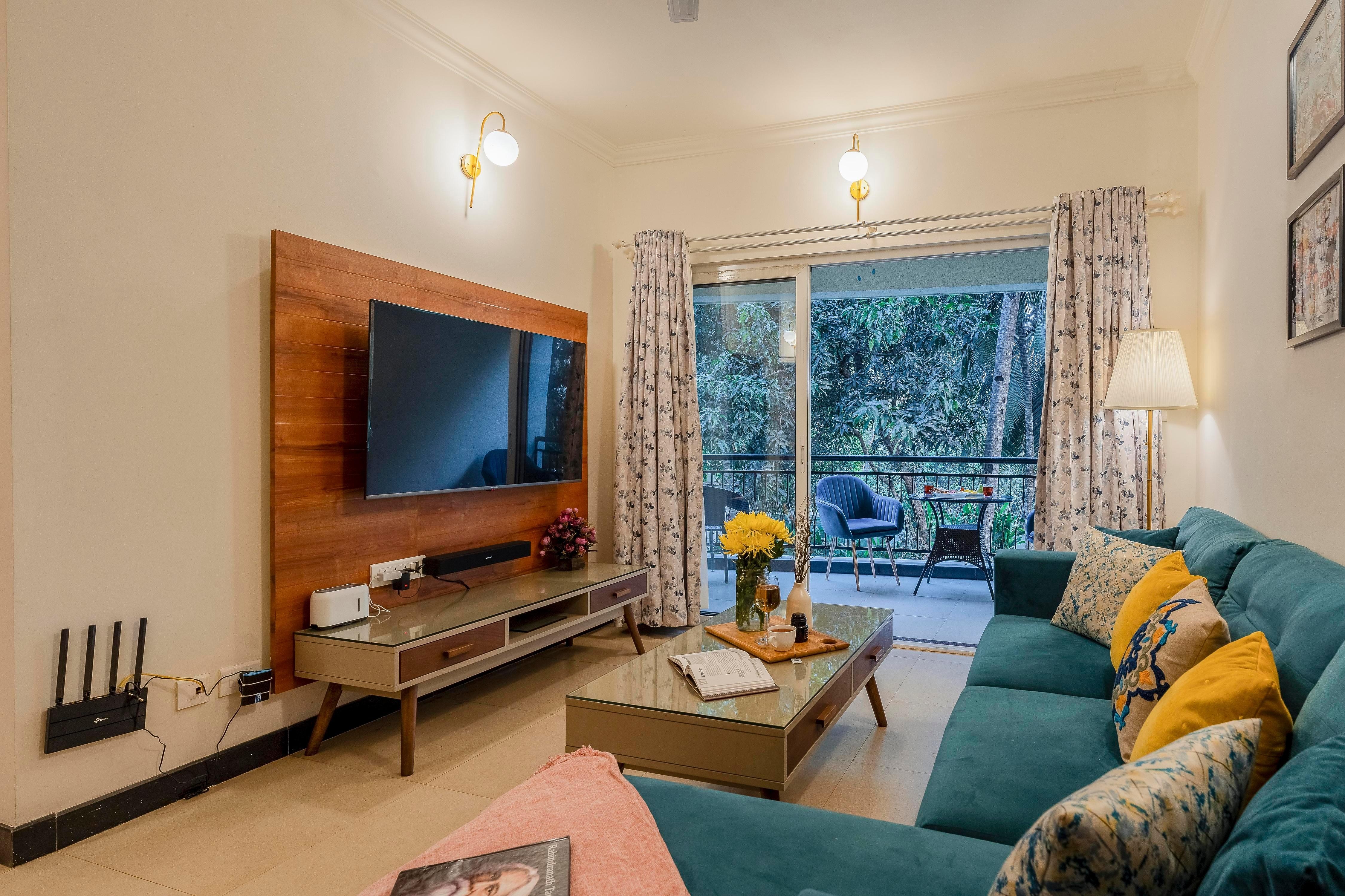 Living Room, Dining Space, and Kitchen: As you step into the apartment, you notice a vibrant living room equipped with a 55-inc ...Read moreLogin to unlock deals & manage your bookings!