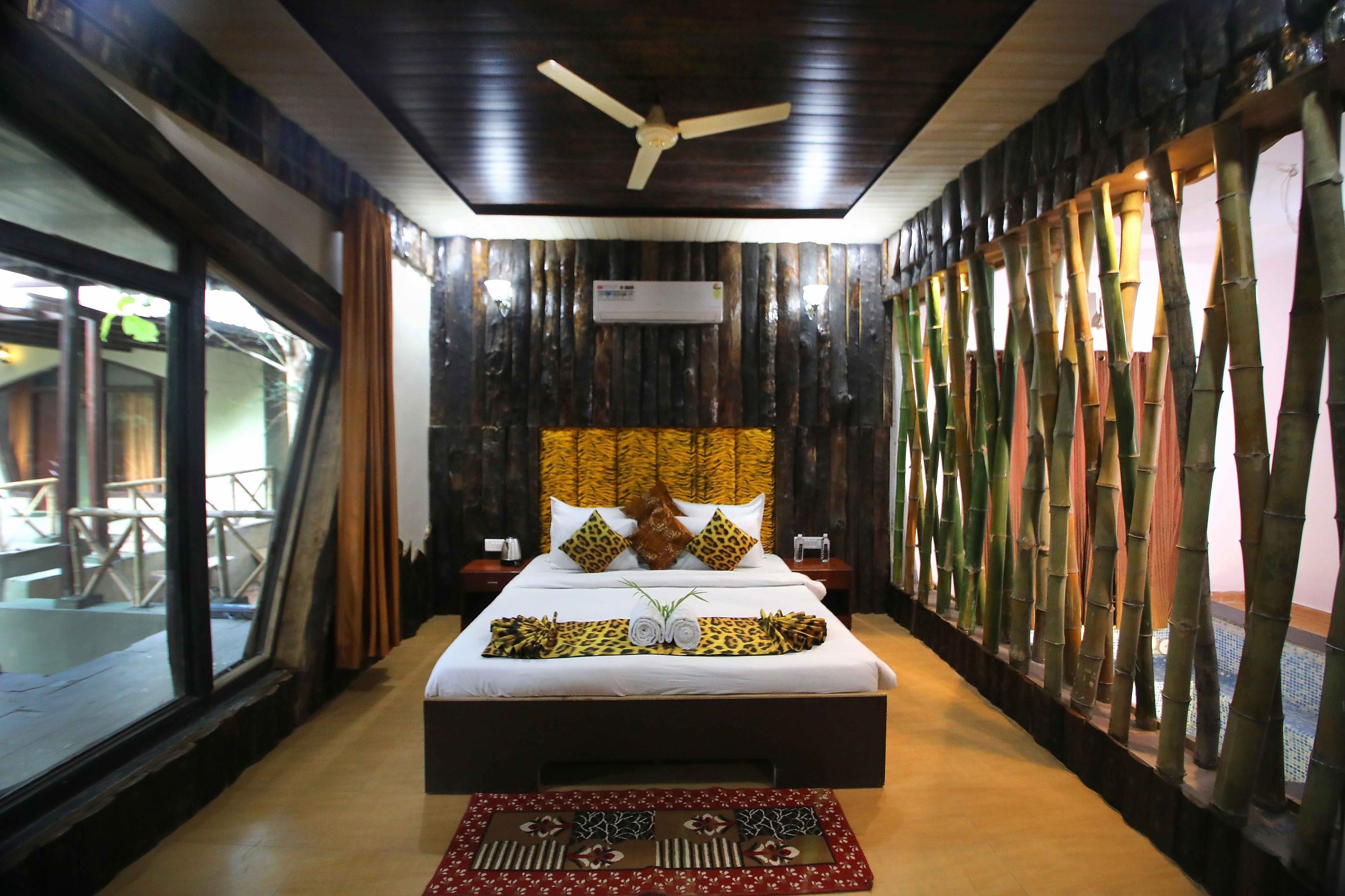 Embark on adventurous safaris from Mogli Resorts Kanha, which features exotic views of the jungle, a bonfire, swimming pool, games room, barbeque, restaurant, business centre, and several other facilities.
