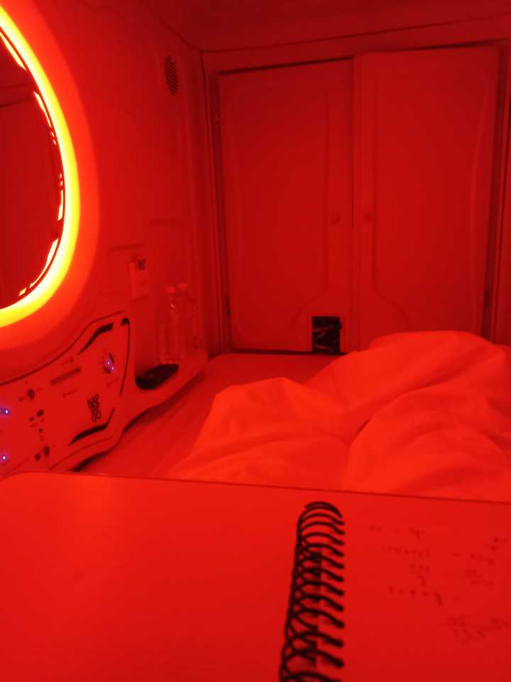 Everything was clean and good. Pods were big enough to sit straight and bathrooms were clean as well