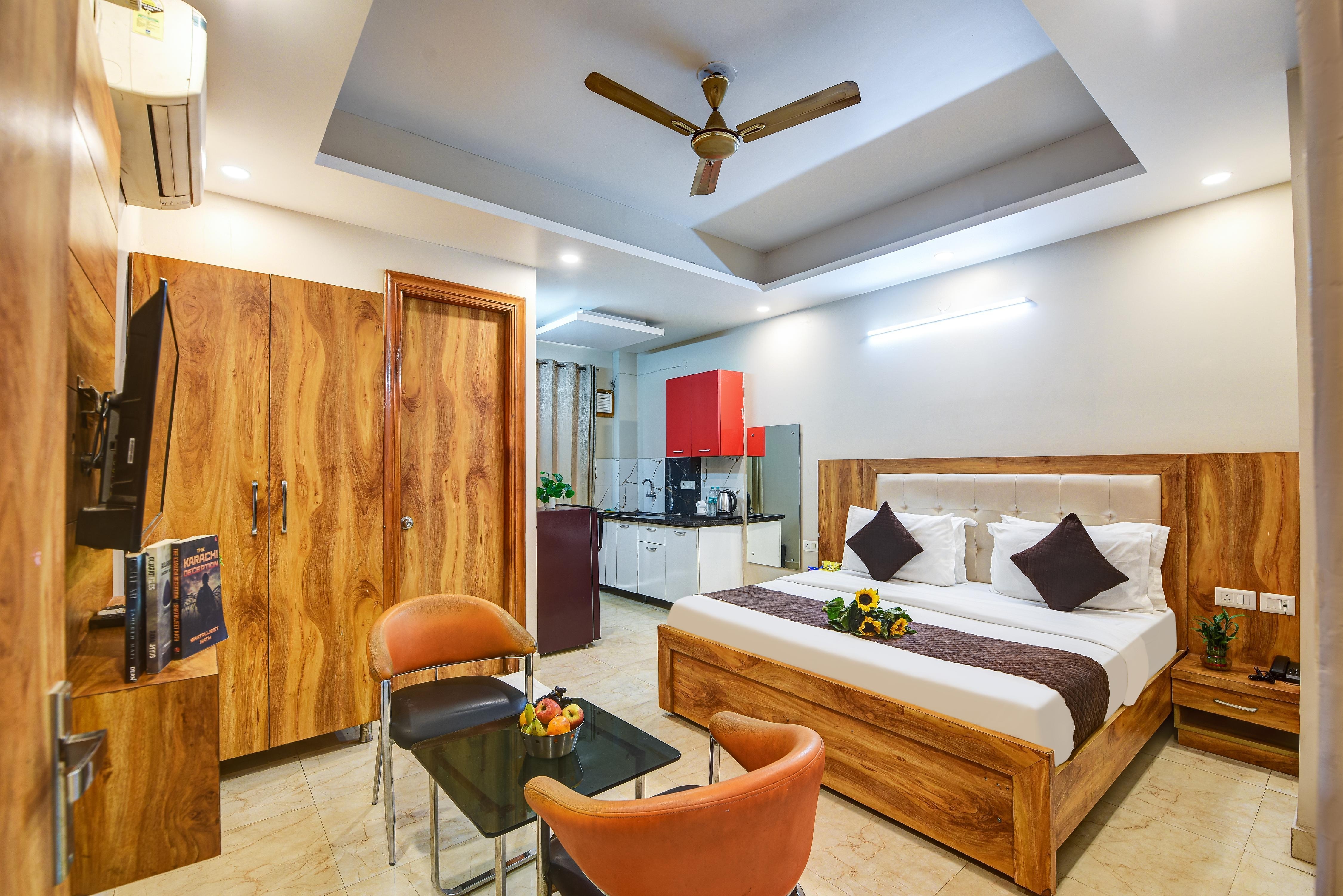 Service apartment offering a kitchen, cook, living room & balcony