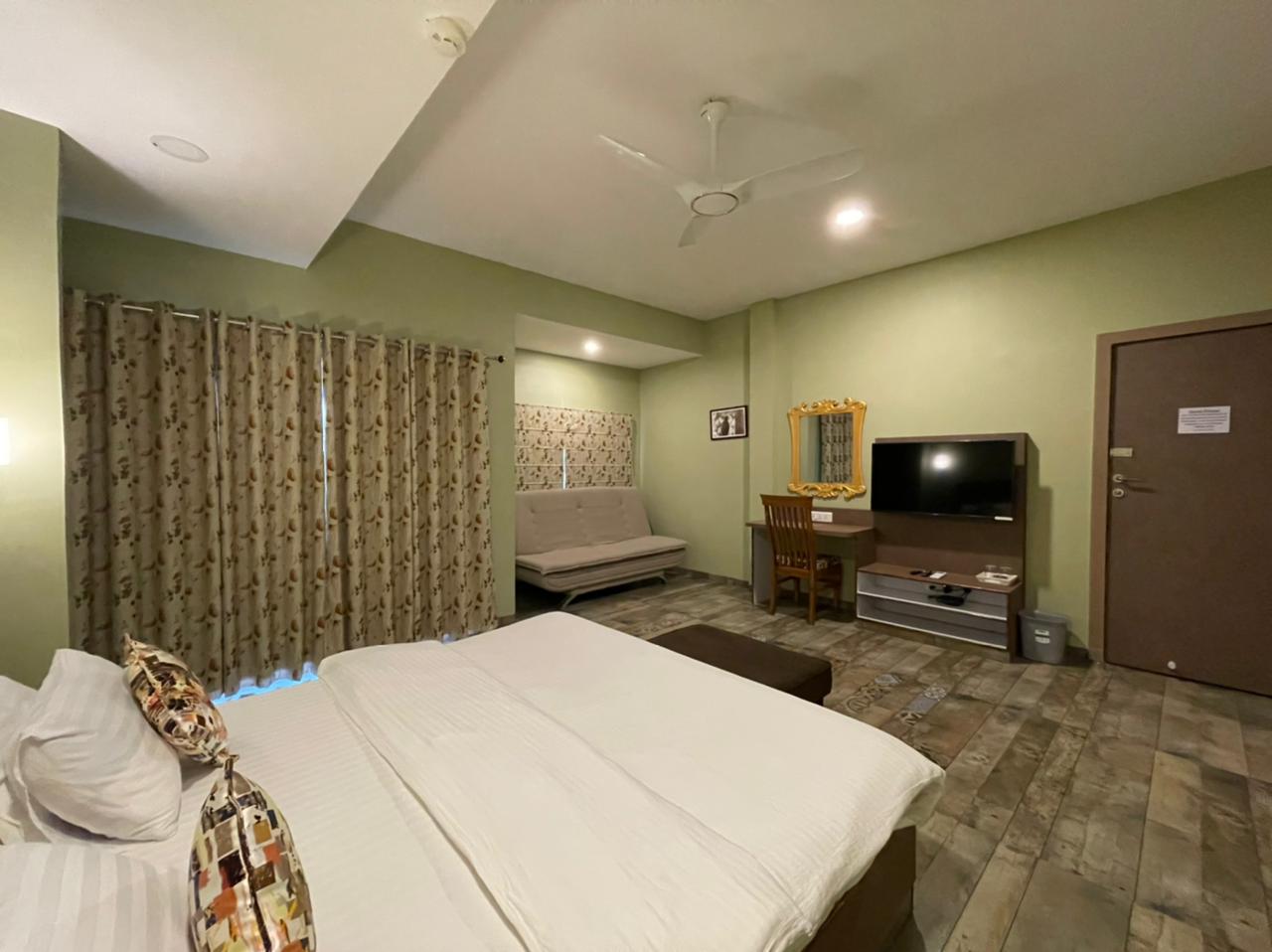 - All the rooms have amenities such as air conditioning, an electric kettle, housekeeping, laundry service, charging points, a sofa, a seating area, a mini-fridge, a mirror, hangers, a chair, a clothes rack, blackout curtains, pillows, a woollen blanket, towels, a sanitary bin, toiletries, a western toilet seat, dustbins, toilet paper, hot and cold water and a shower.