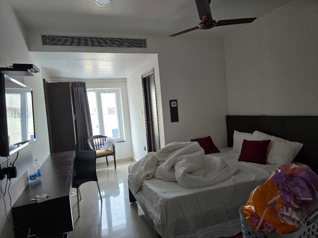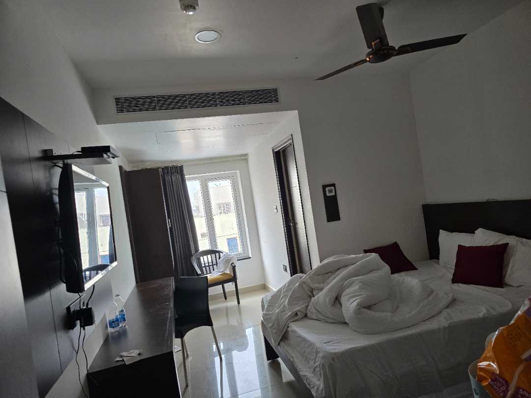 The hotel room is clean and good. The room we stayed in is decent in size. The only issue is their complimentary breakfast. It is filled with ants, cold and not suitable for human consumption. The property was good and clean. The room size is decent. The toilets were clean. The taps were dispensing clean water. The room has decent air-conditioning system. The issue with the complimentary breakfast. It is very poor and not for human consumption. Shown this to the staff at the restaurant that there were ants in the sweet they served, the Dosa was cold, Idli was hard and cold. The item was served to us by a cleaning staff (while I’m not degrading them) but amidst of her cleaning work, she walked up with the plate in hand which was not tidy and she was touching the dosa with bare hands. This is really painful. Also, the room service is only for Hot beverages. Inspite of ordering sugarless coffee or tea they loaded the beverages with sugar. This was again another challenge.