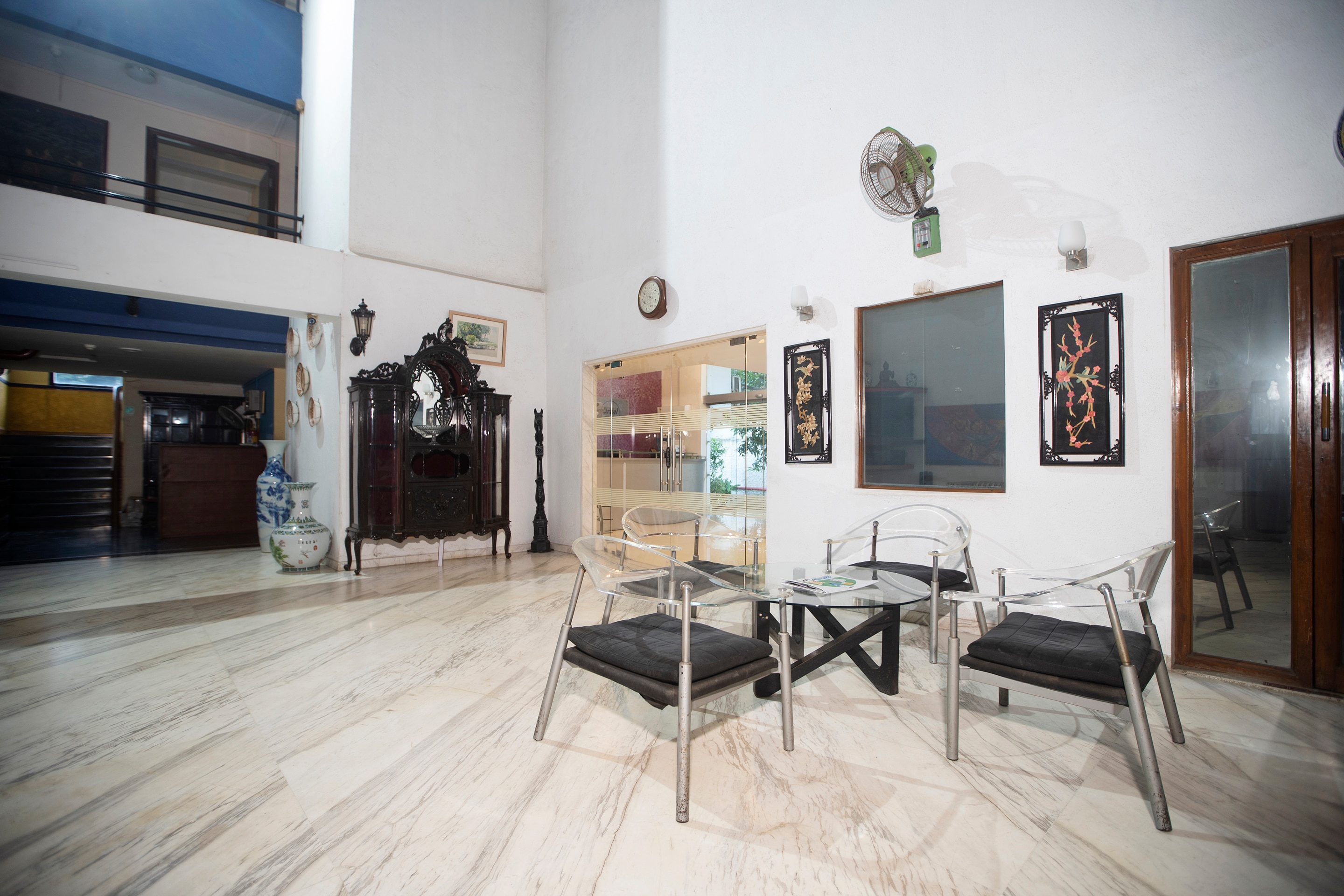 - Studio Apartments (200 sq ft) perfect for couples or single executives feature AC, flat-screen TV, double bed, iron & ironing board, refrigerator, tea kettle, wardrobe, in-room safe and attached bathroom.