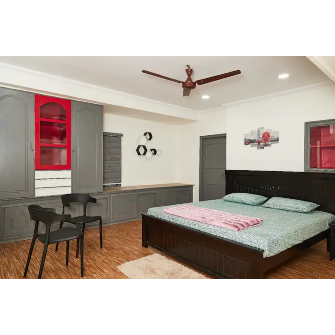 Stay in a spacious pet-friendly penthouse in Hyderabad, featuring 2 bedrooms, a terrace & a fully equipped kitchen. More