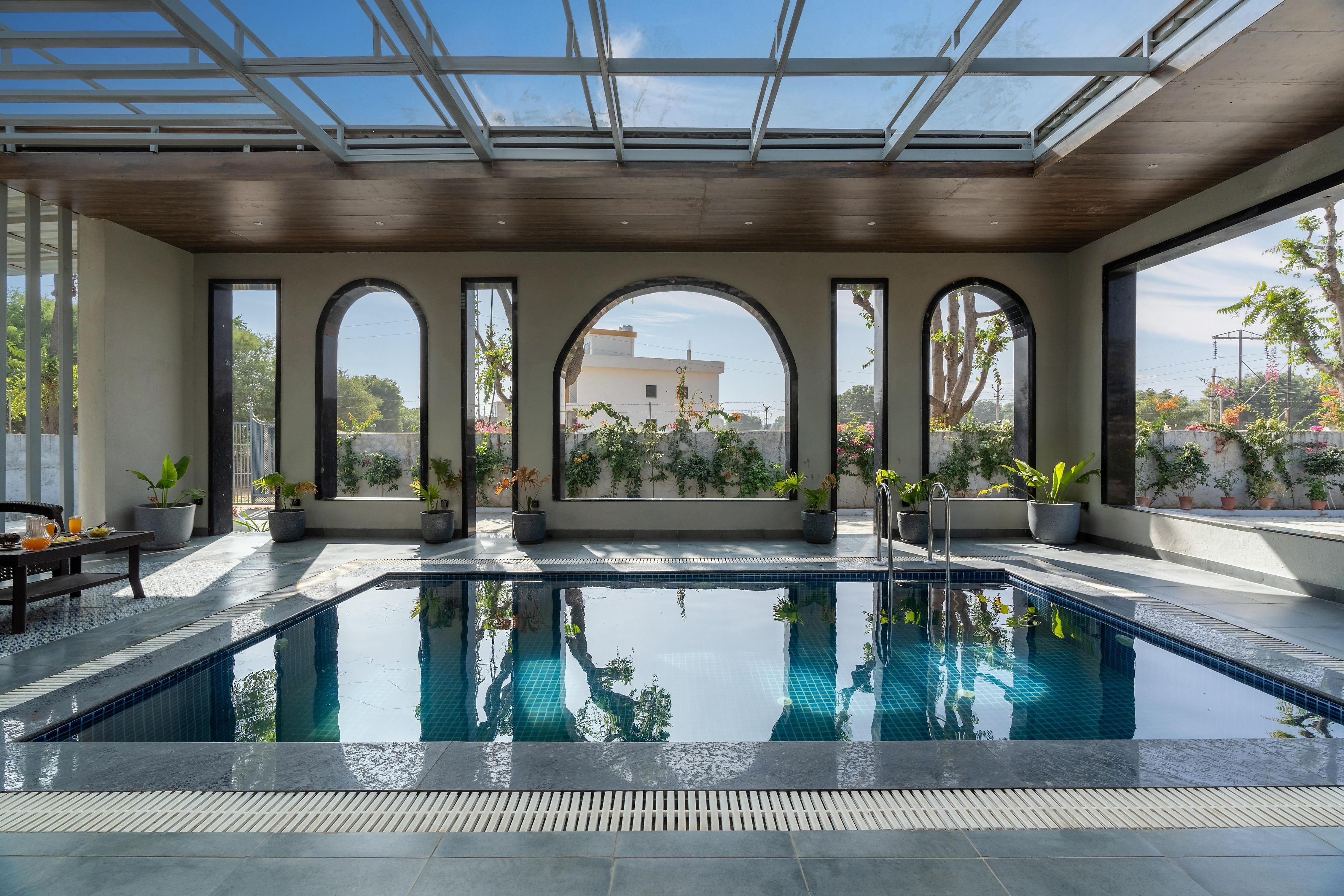 Situated in the Pink City, this 2-BHK retreat is an ideal getaway for you & your furry friends! Take a dip in the indoor pool, f ...Read moreLogin to unlock deals & manage your bookings!