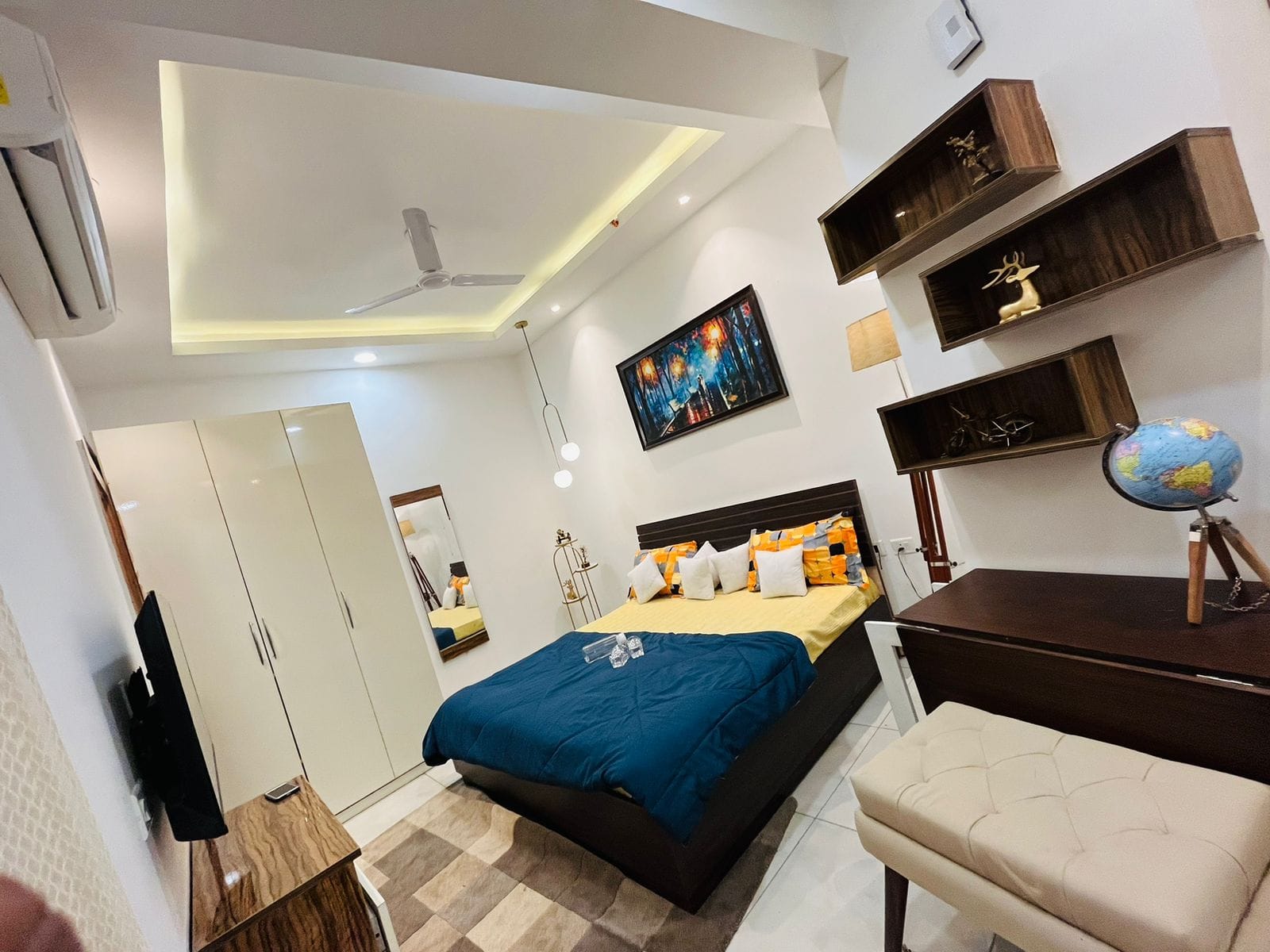 The spacious bedroom features a sumptuous king-sized bed with high-thread-count linens, promising a restful night's sleep. Elega ...Read moreLogin to unlock deals & manage your bookings!