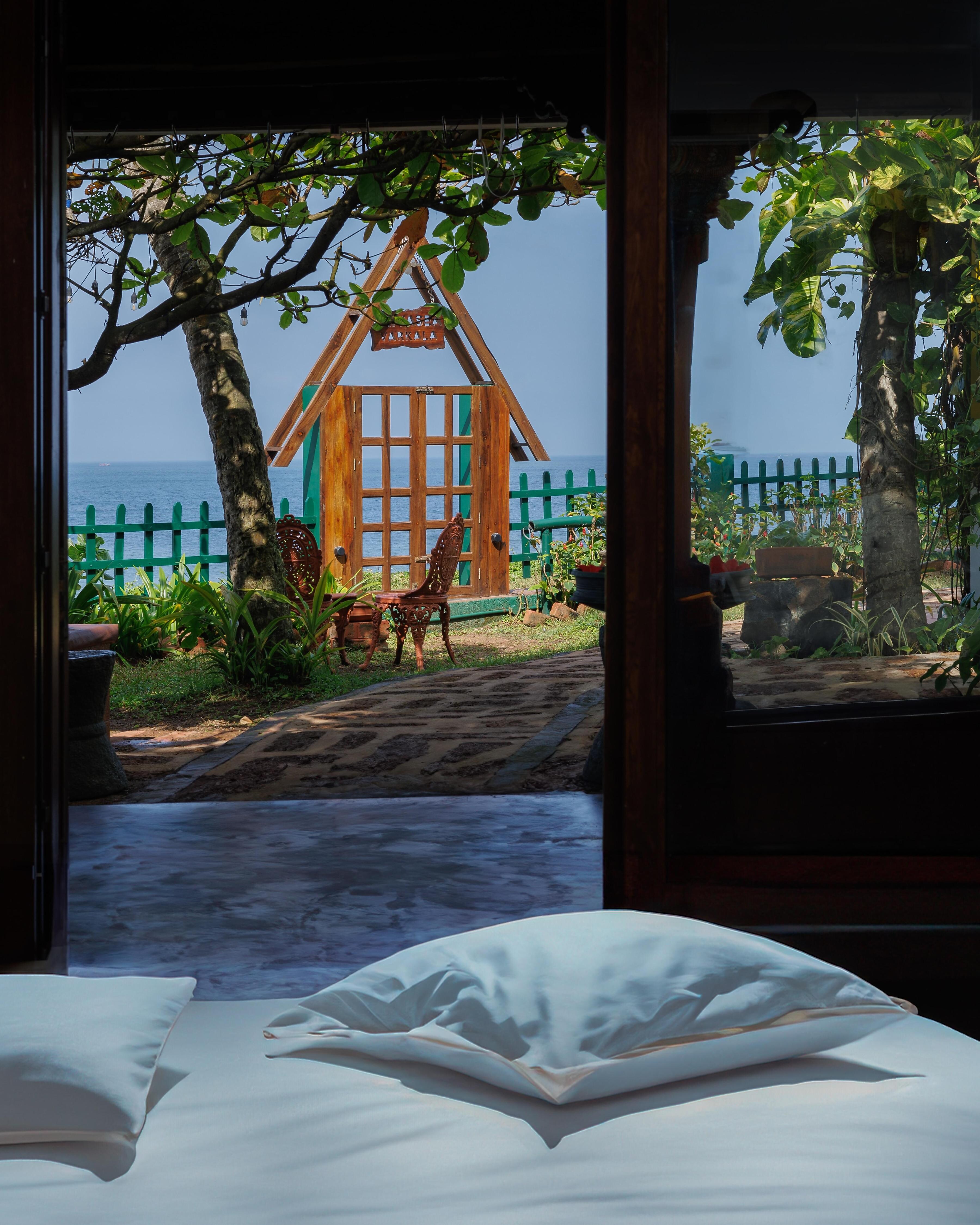 Discover a pet-friendly, cliffside villa in Varkala, featuring sea views, a verandah, terrace, BBQ & outdoor dining. More