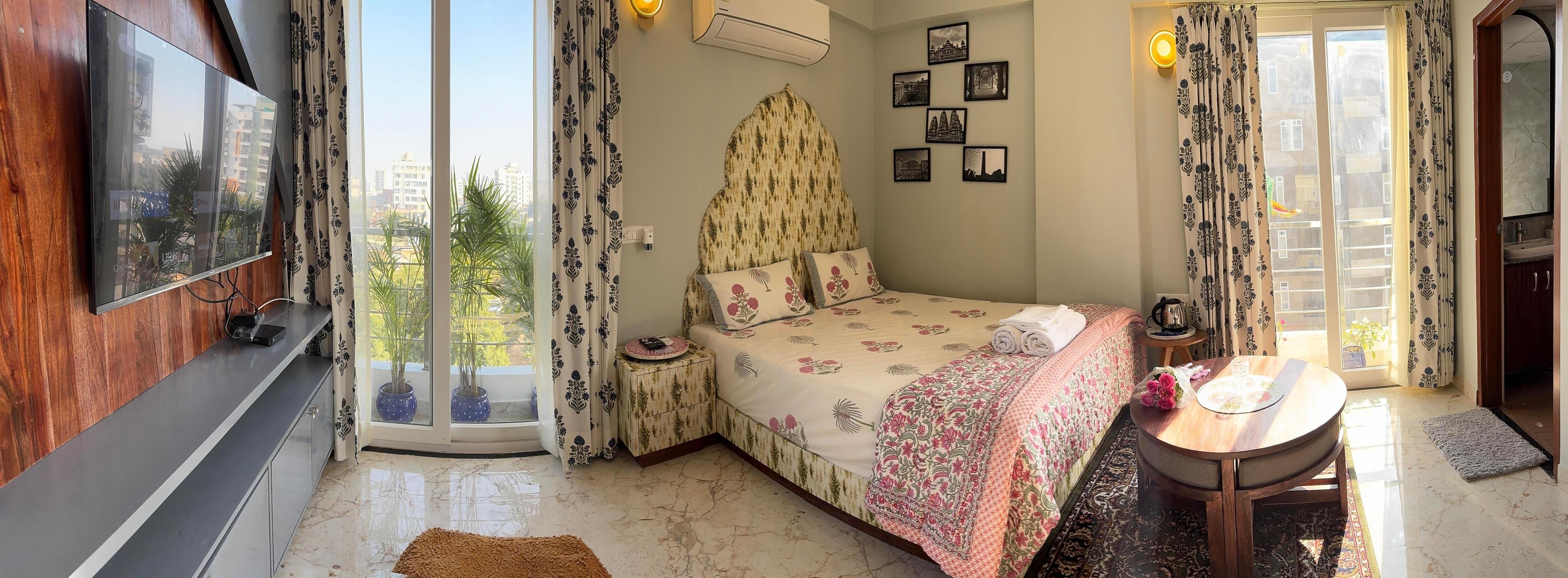 Unwind in this stunning, modern studio apartment, your oasis in the vibrant heart of Jaipur. The well equipped kitchen allows fo ...Read moreLogin to unlock deals & manage your bookings!