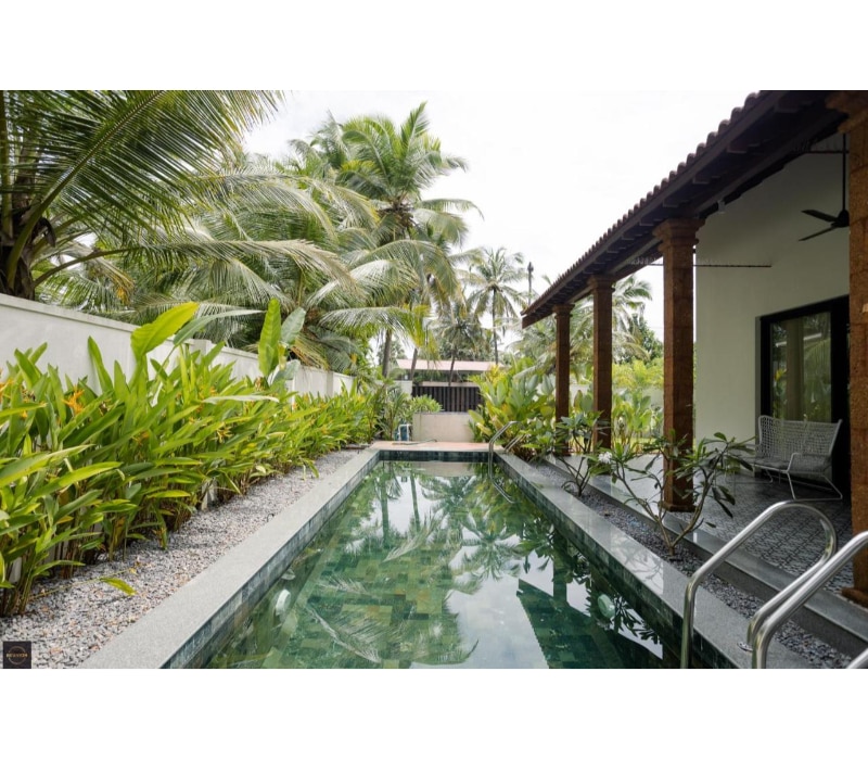 Pool villa with a living room, kitchen & parking