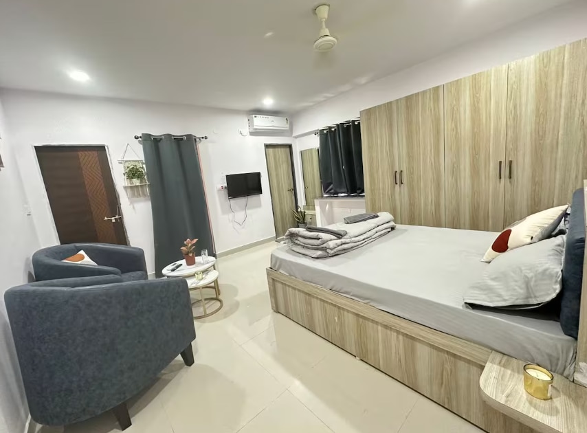 Rock Nest - Cozy 1RK Studio . Perfect for solo travelers or couples! This charming 1RK studio flat spans 150 sqft of boho-chic l ...Read moreLogin to unlock deals & manage your bookings!