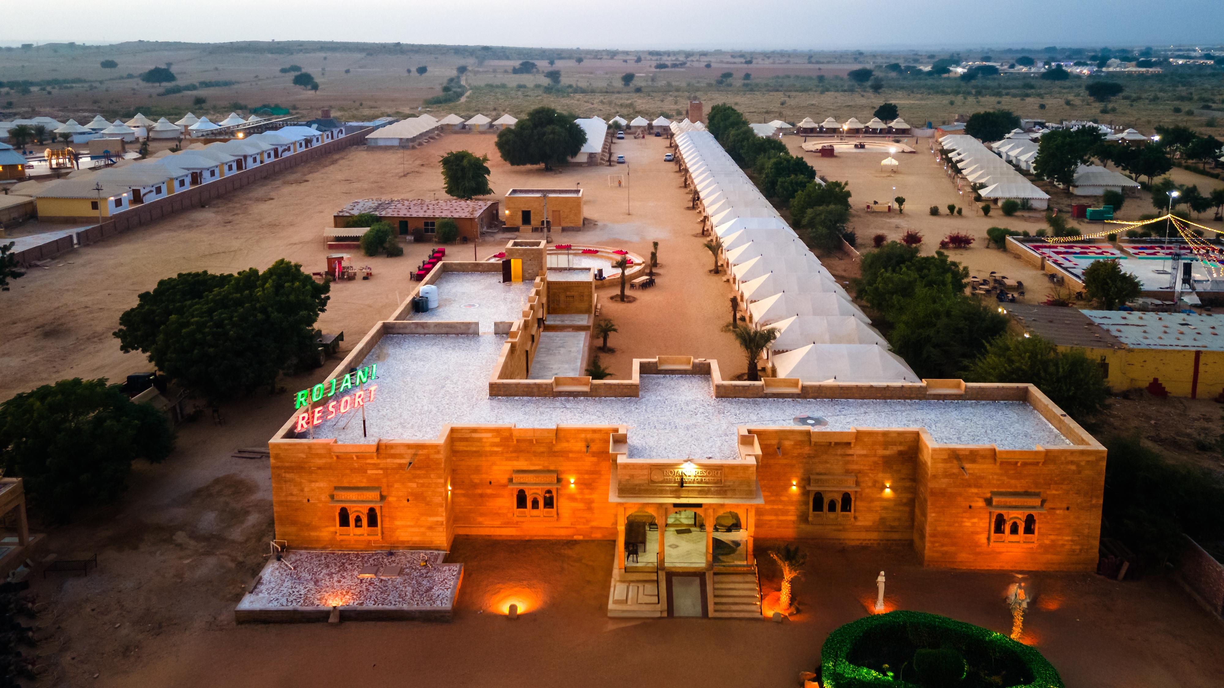 Get to live and experience the Rajasthani culture with a stay in tents/cottages near the very popular Sand Dunes at Rojani Resort in Jaisalmer. More