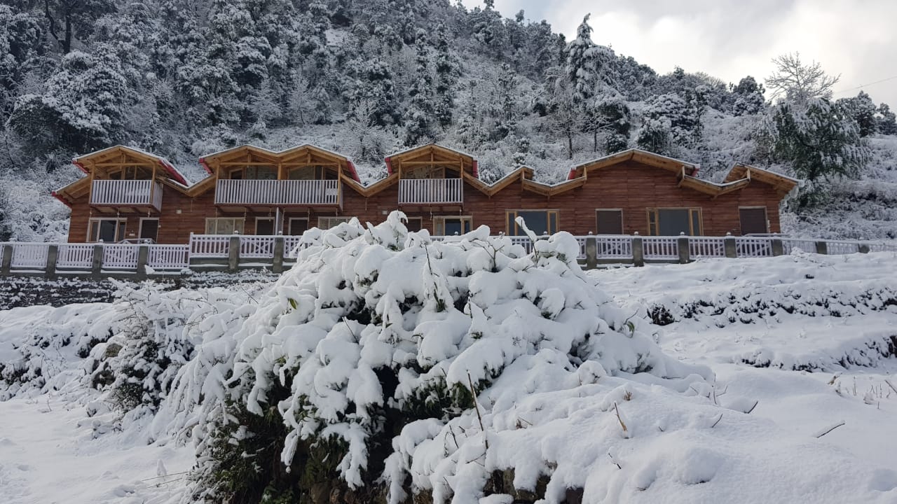 Experience a blend of traditional style with modern facilities like a restaurant, Wi-Fi, amidst snowy mountains and a calm environment at Rooftop Cottages, Nainital. More