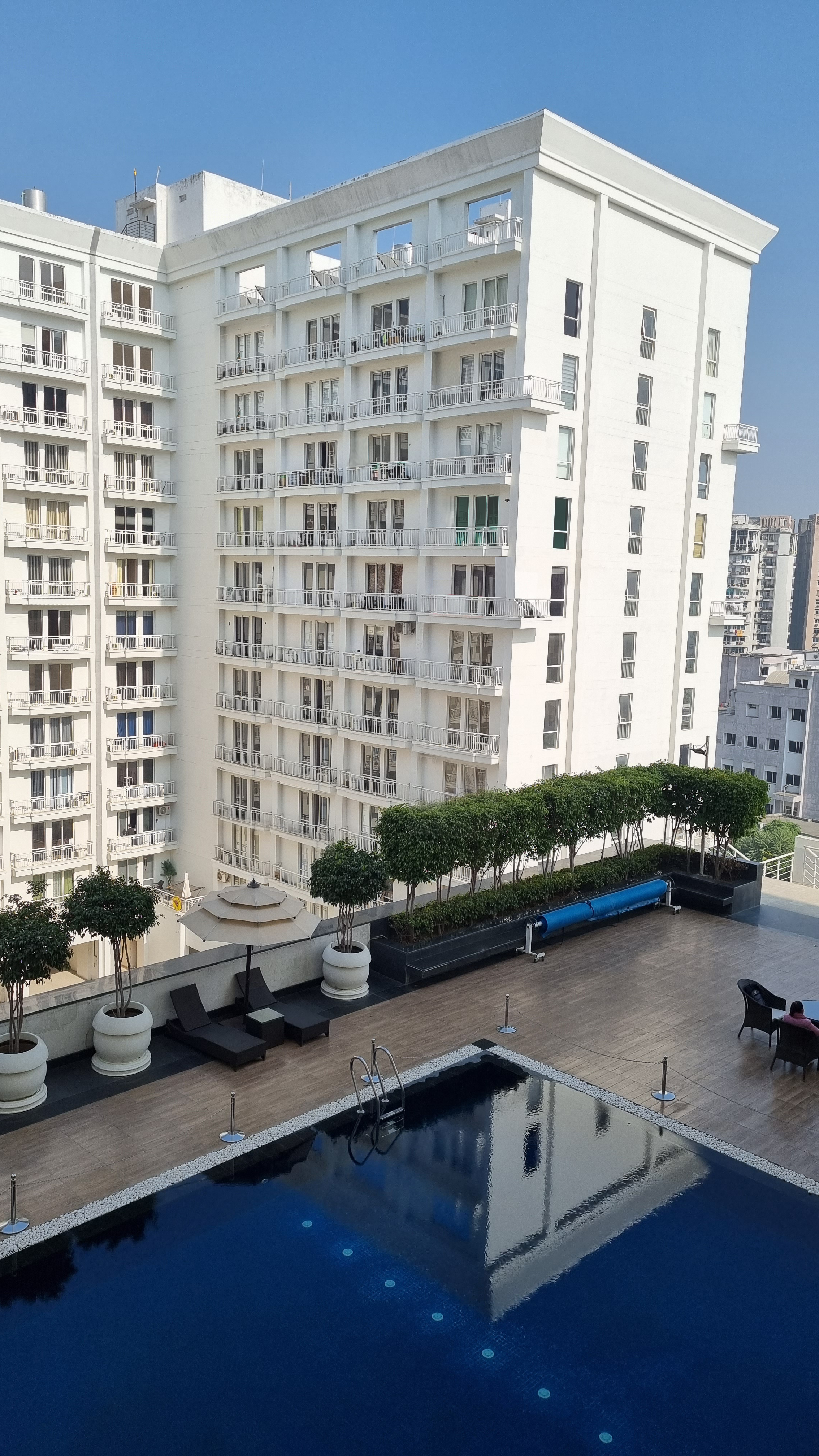 Experience modern comfort at a serviced apartment in Lucknow featuring access to a shared pool & a private balcony. More