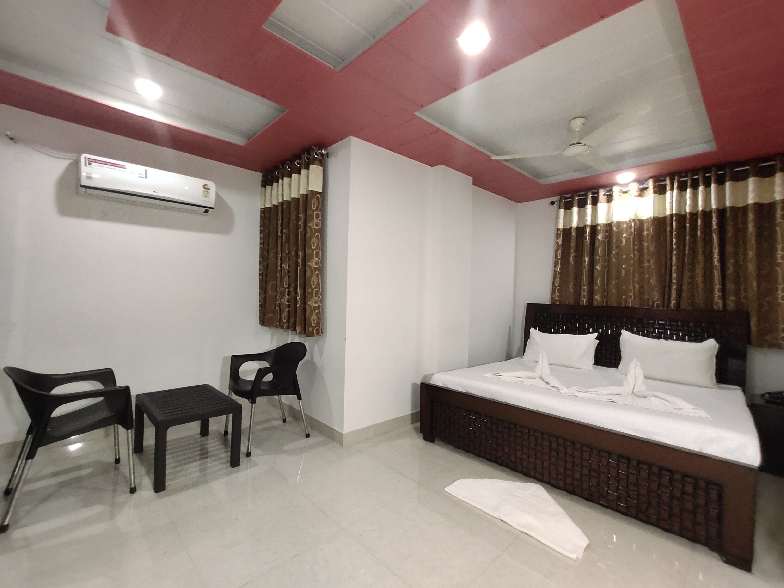 - The Deluxe rooms are slightly smaller at 150 sq. ft, complete with a double-sized bed. The rooms are provided with black-out curtains and electronic safes to ensure privacy and safety. There is an attached terrace to stretch one's legs after a tiring day of sightseeing.