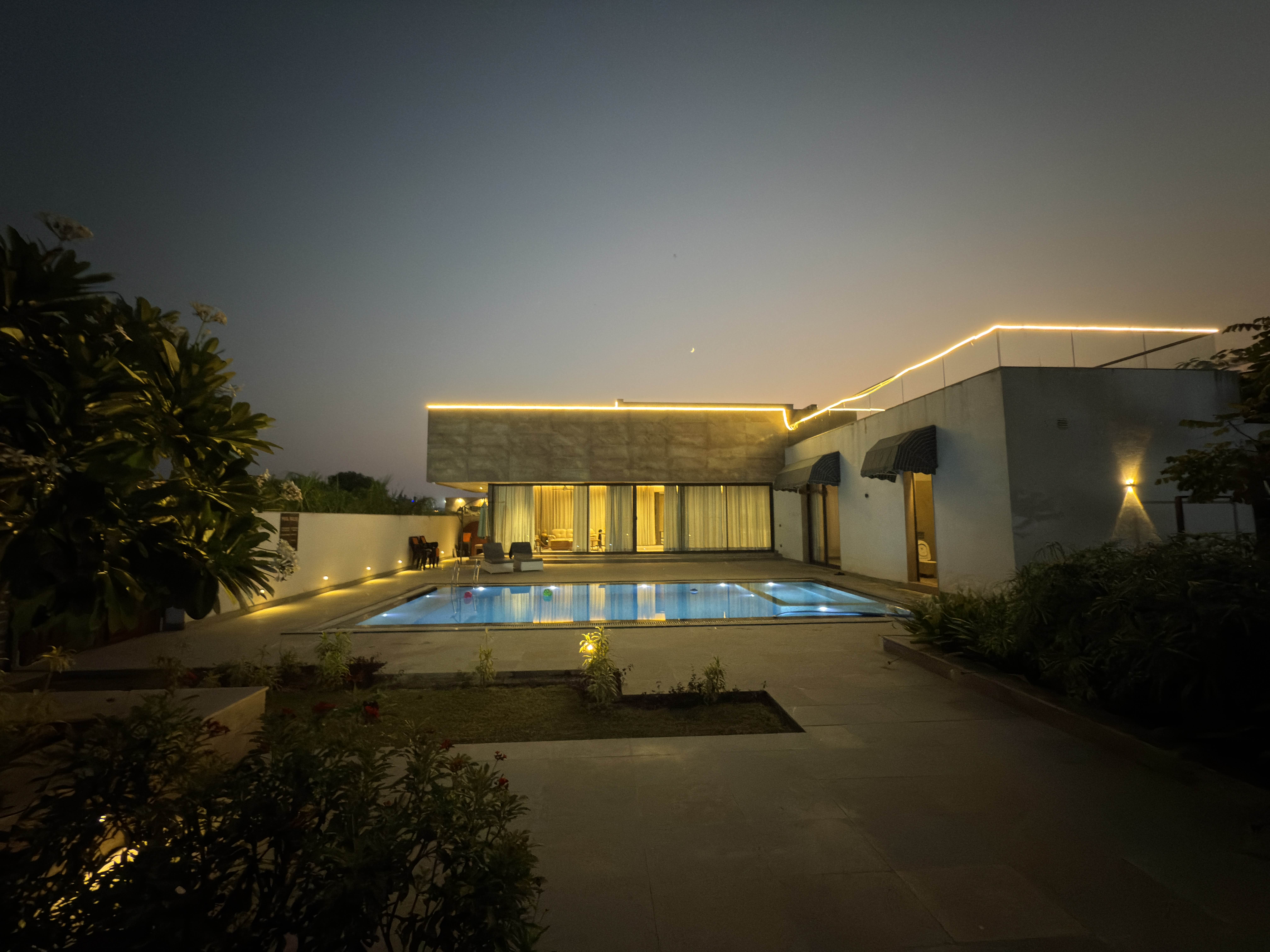 We were 8 people in a family event and had an excellent time. Facilities were top notch as shown in pics and the property had a large lawn - great for cricket (we carried our own kit). Nice clean pool and sitting areas. Best was on-site chef who made meals as per our preferences.