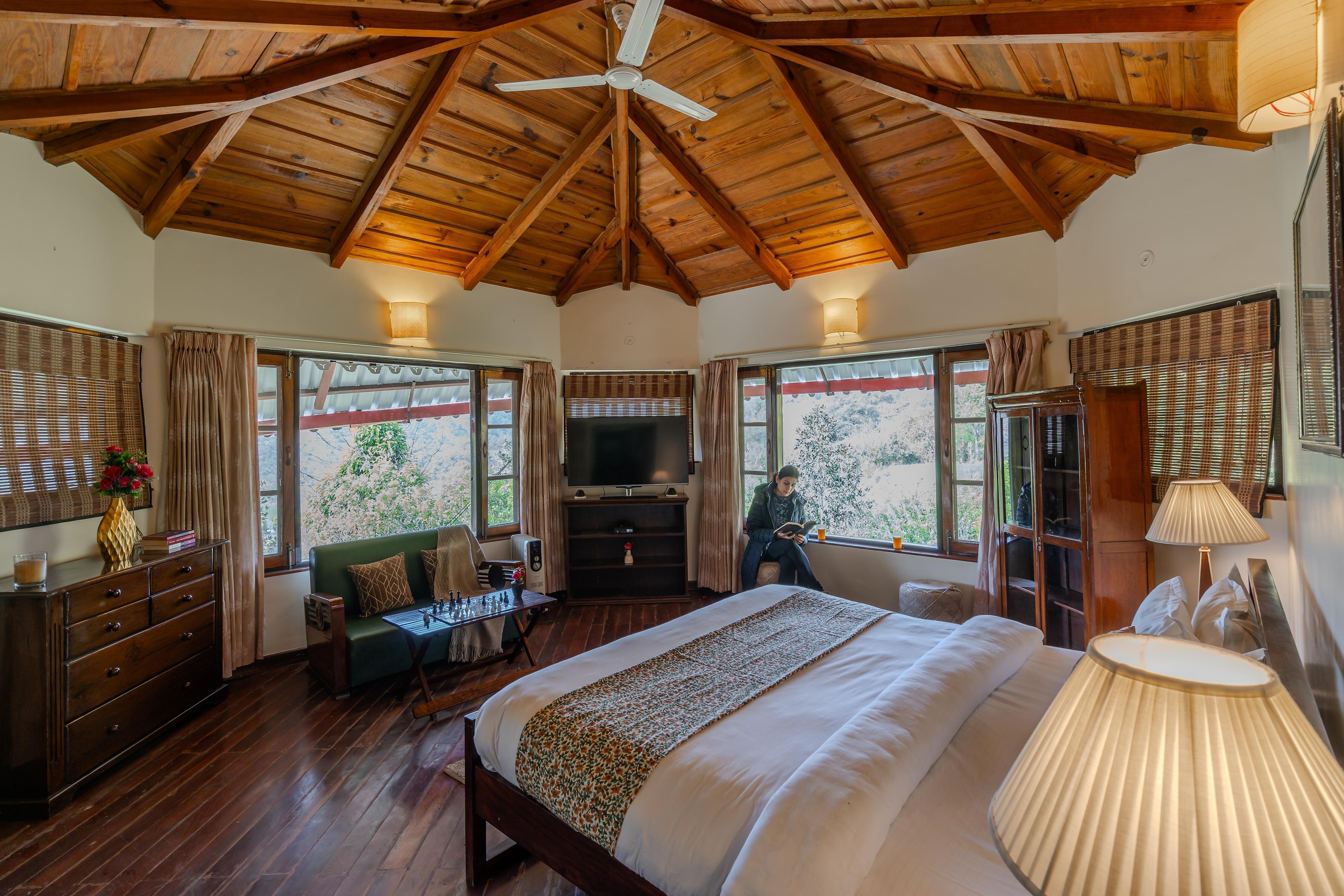 Nestled in the serene hills near Bhimtal, SaffronStays Casa Octavia, is a unique three-bedroom villa featuring an octagonal desi ...Read moreLogin to unlock deals & manage your bookings!
