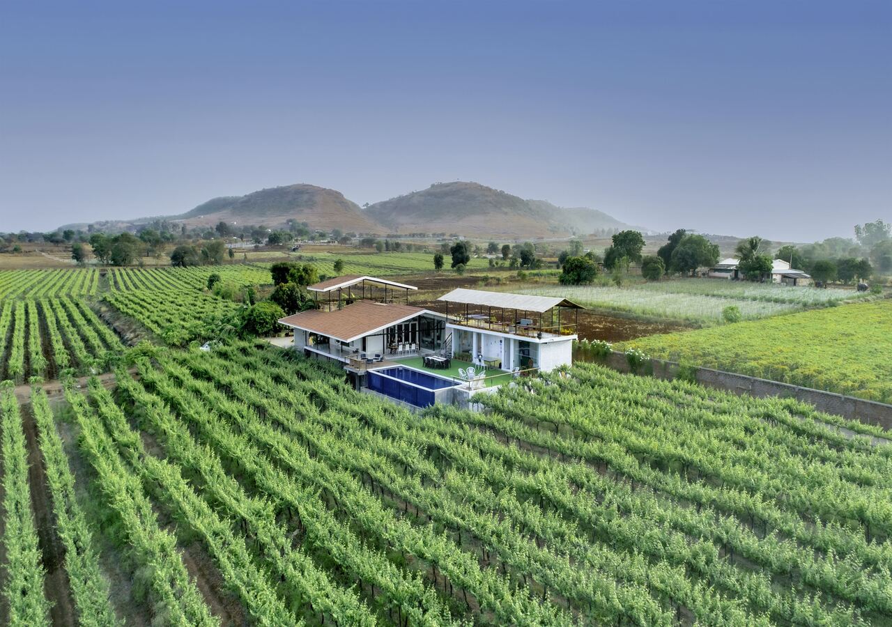 Close to Sula Vineyards, this stylish property features a dining area, a verdant lawn and a caretaker. More