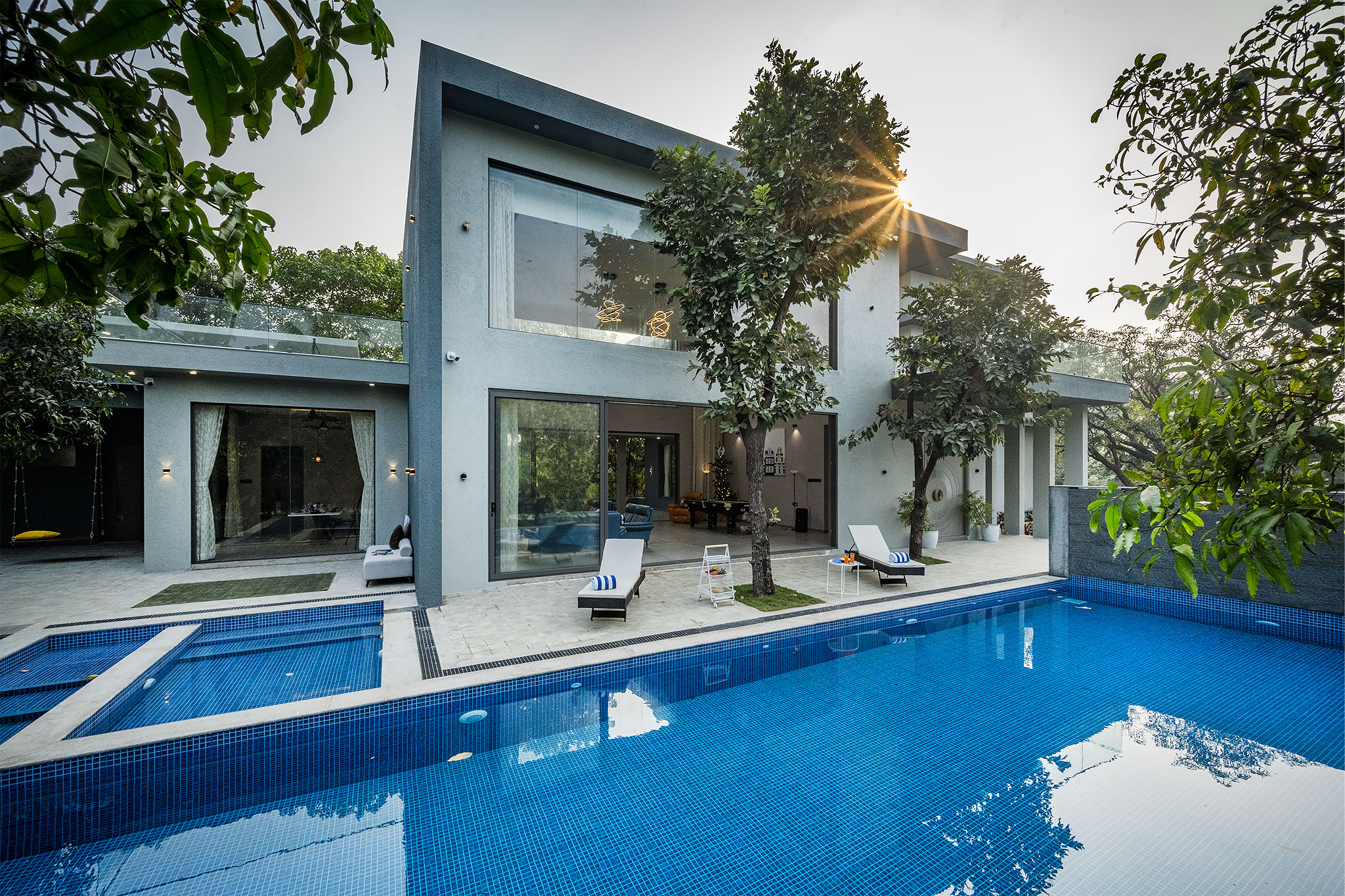 A chic grey-themed retreat in Alibaug, this 6-bedroom villa is all about laid-back luxury. With a high-ceiling living room, a po ...Read moreLogin to unlock deals & manage your bookings!