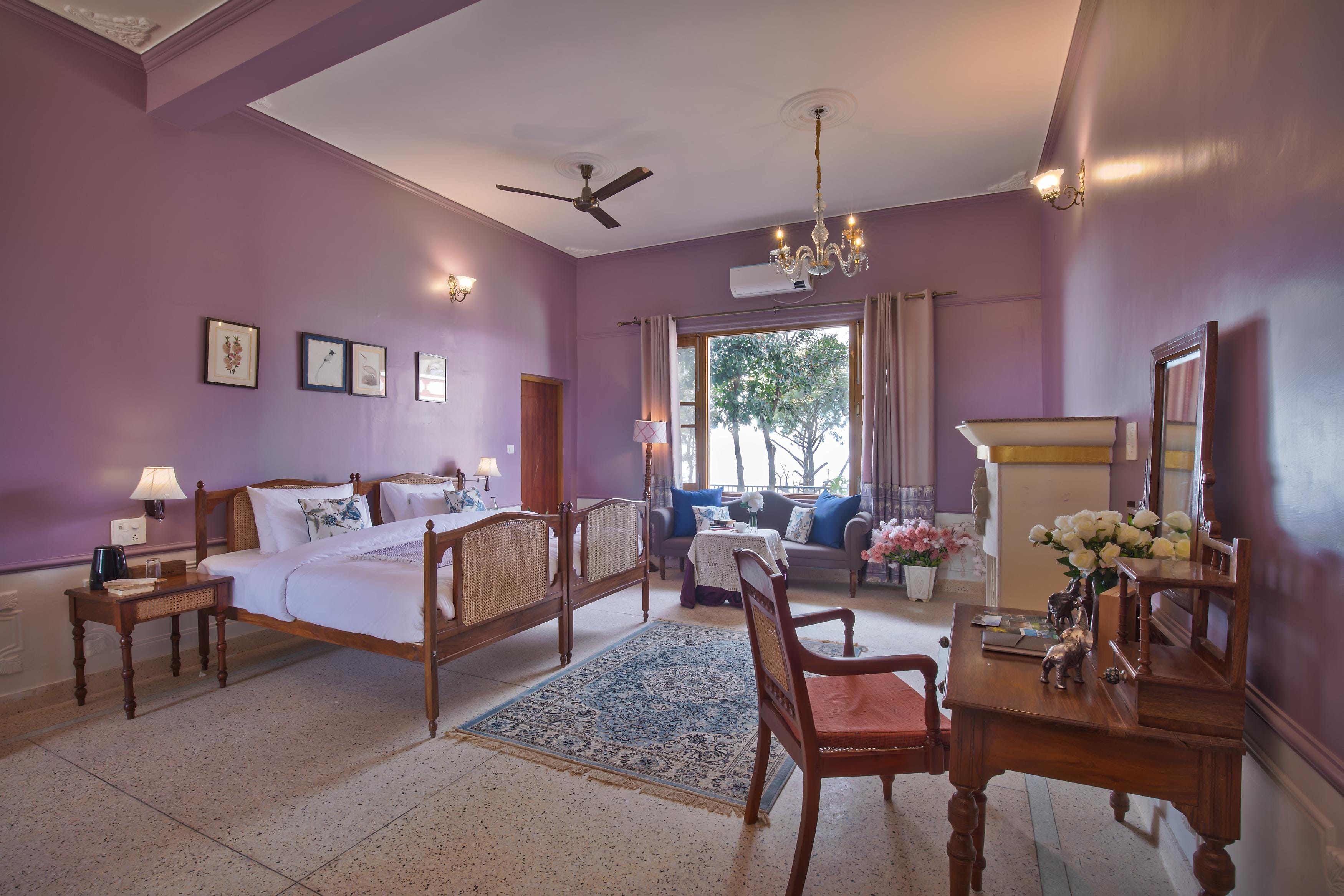 Experience a serene getaway in this 8-BHK villa featuring mountain views, antique interiors & a charming gazebo. More