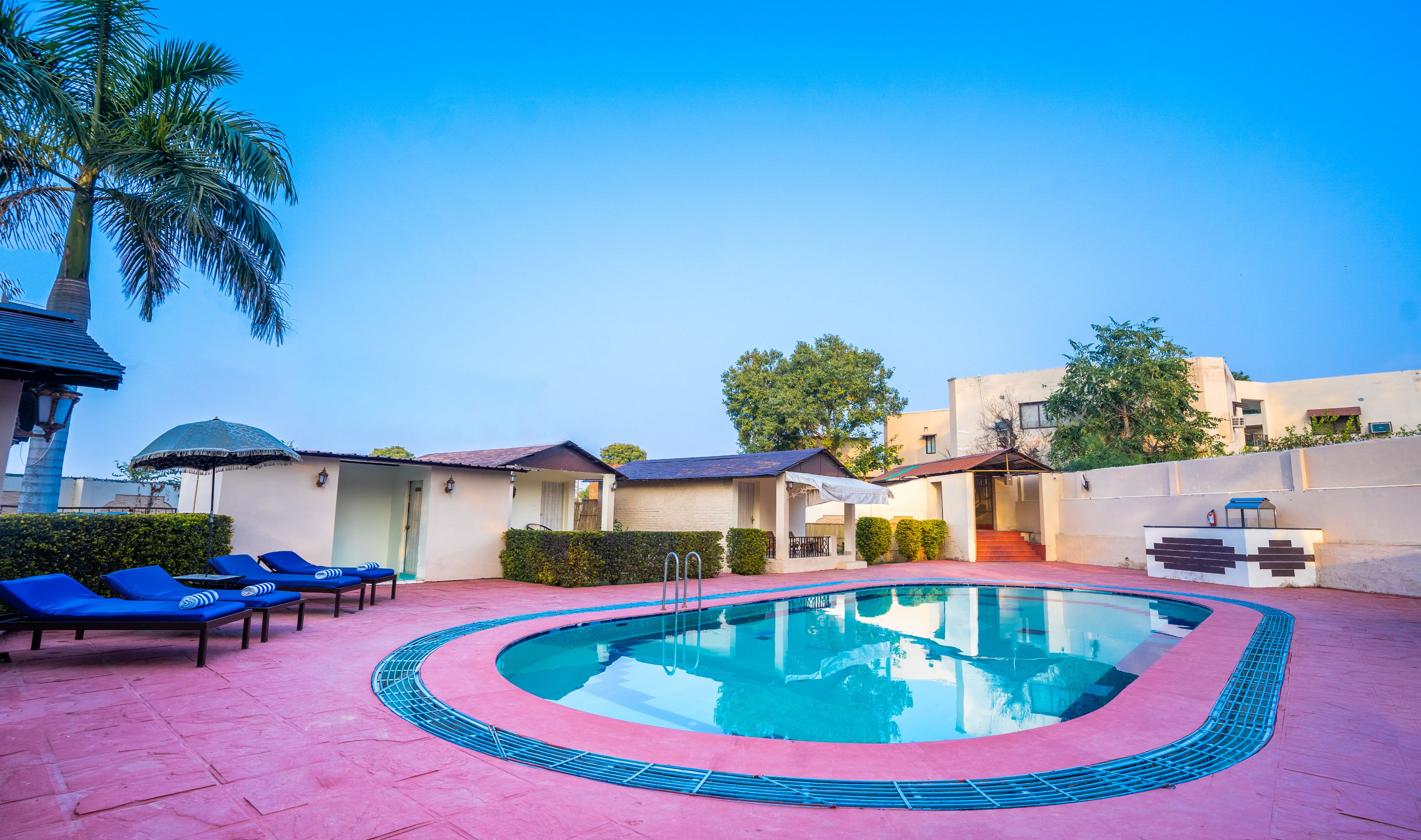 Experience elegance, and tasteful contemporary Rajasthani style, dine by the open wood fireplace and enjoy Folk music at Shani Vilas Ranthambore. More