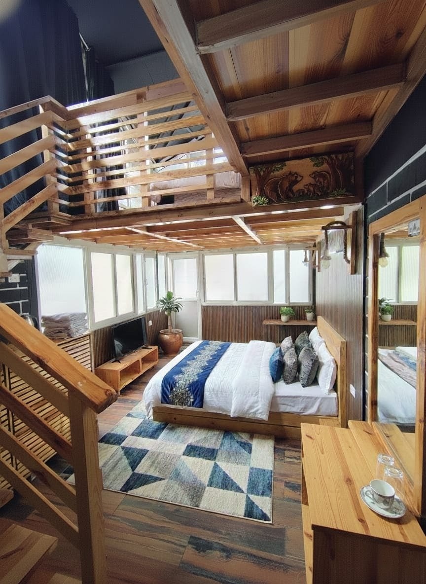 Our beautifully designed duplex apartment offers a warm and elegant stay, highlighted by exquisite wooden work that adds charm a ...Read moreLogin to unlock deals & manage your bookings!