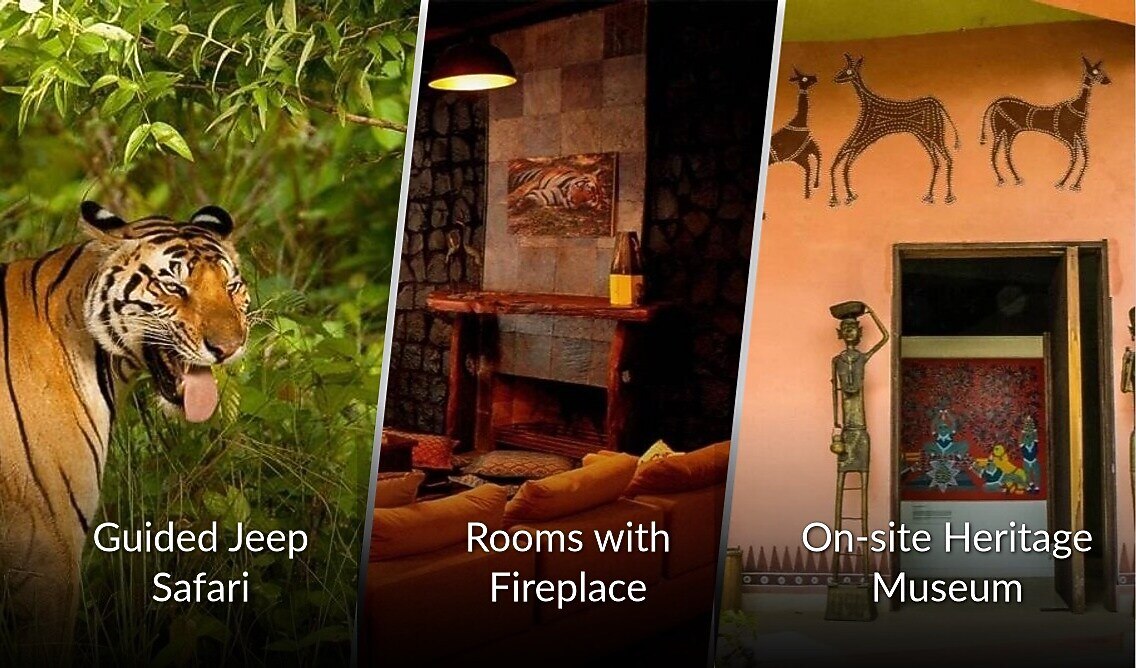 - The cottages are provided with all the modern amenities like AC, flat-screen TV, comfortable seating area, dressing area, windows with jungle view, tea/coffee maker and an attached bathroom with toiletries.