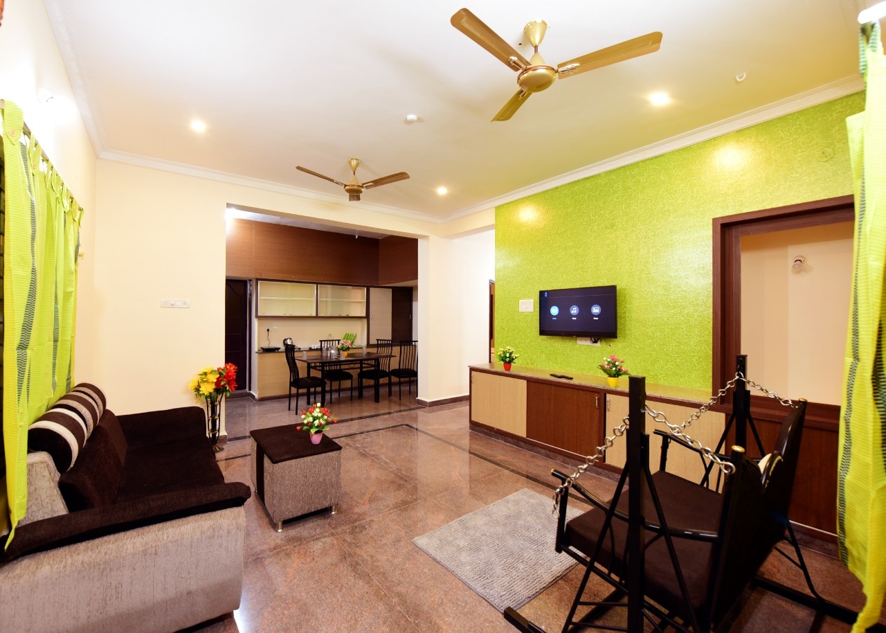 Stay in Tirupati at a fully serviced 2-BHK apartment with a kitchenette & 24-hour security. More