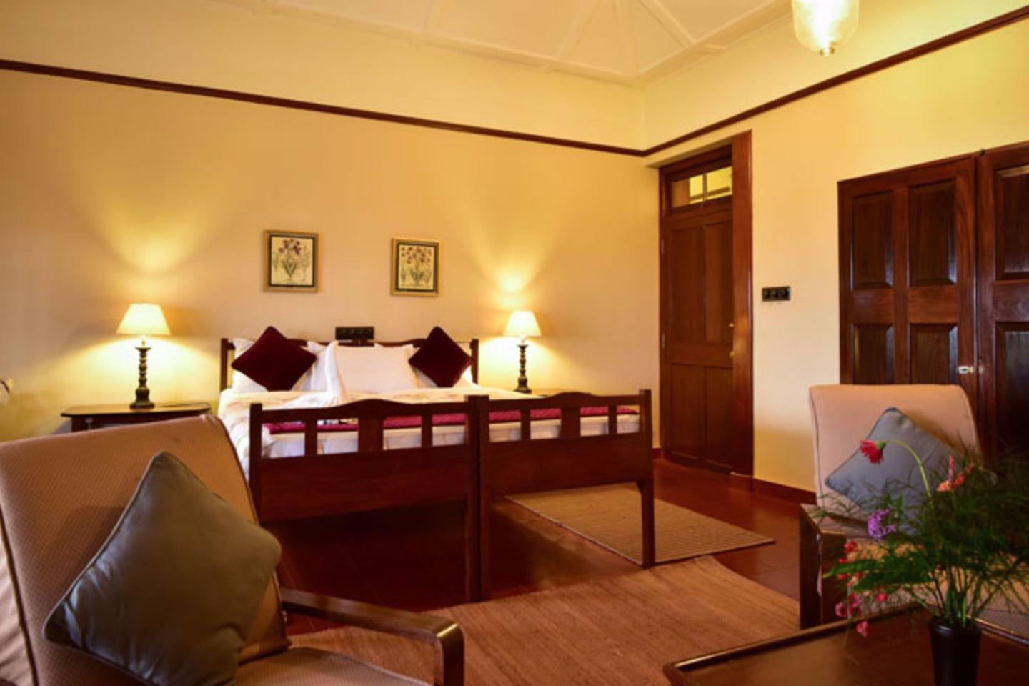 This sophisticated bungalow features 4 bedrooms, which are decorated elegantly to set a warm ambience and equipped with premium amenities.Additionally, it has 5 single bedroom wooden chalets overlooking the serene grass hills and 2 double bedded wooden chalets facing the Injipara River.All the rooms have well-appointed bathrooms with complimentary toiletries.