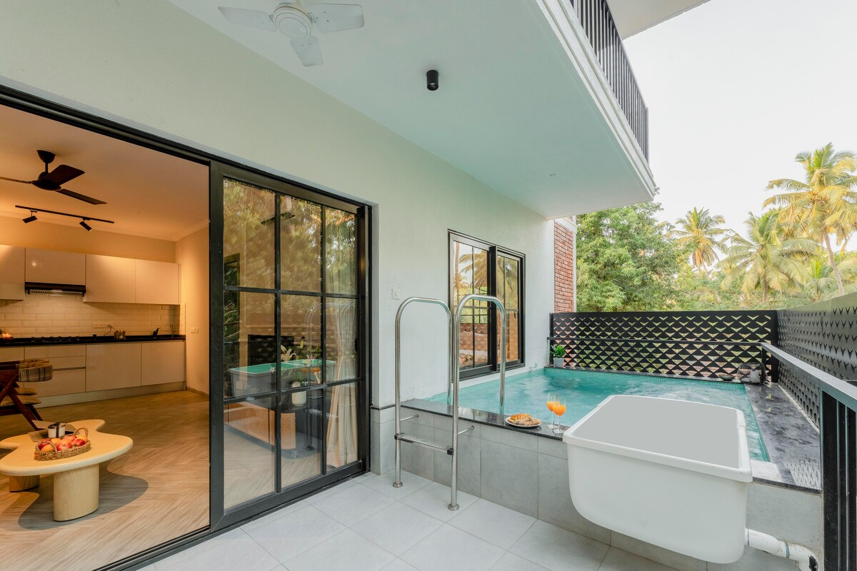 Relax in style at this exclusive 1-bedroom apartment with a private pool, steps away from Calangute beach in Goa. More