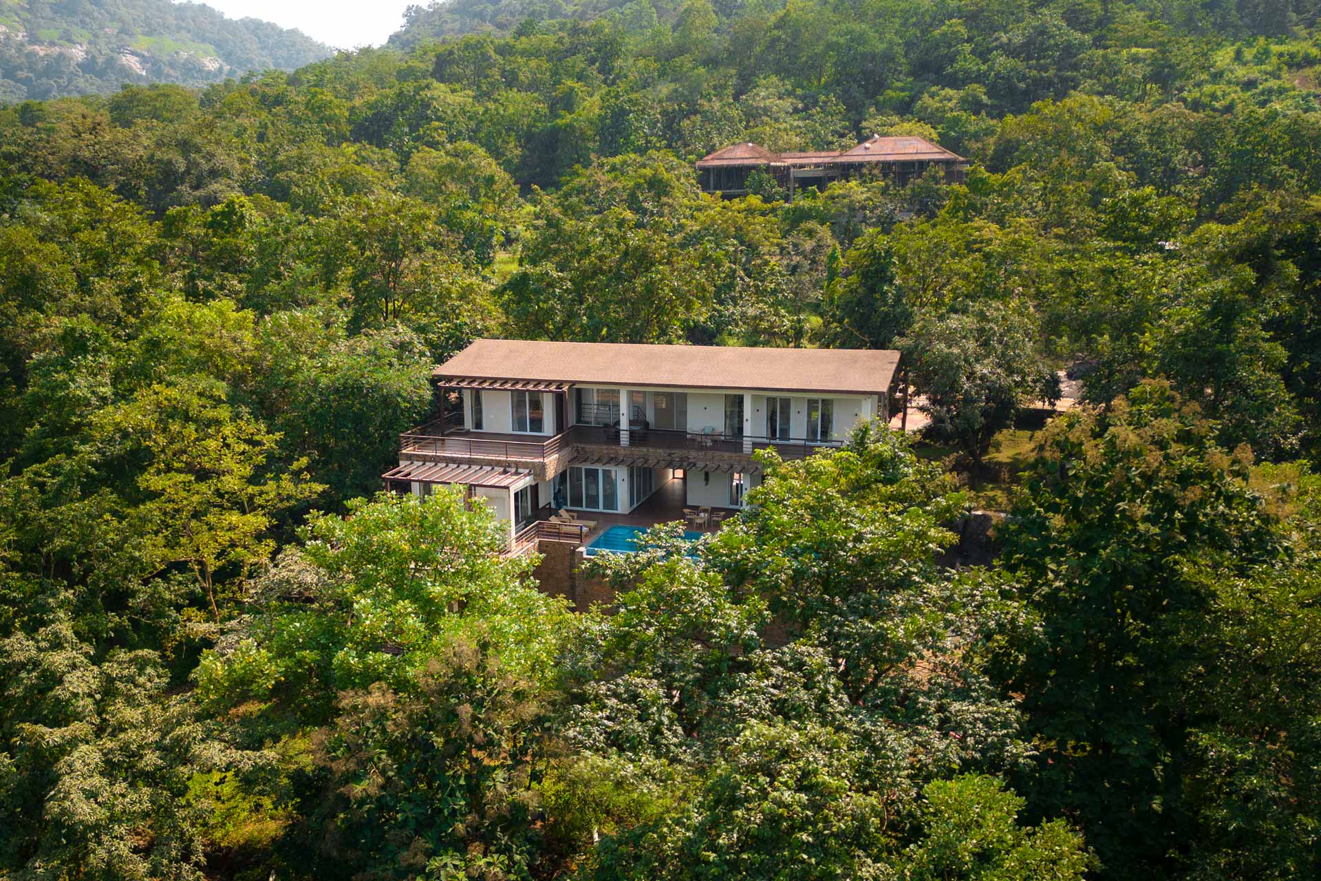 Pool villa amidst greenery with a kitchen & terrace with views