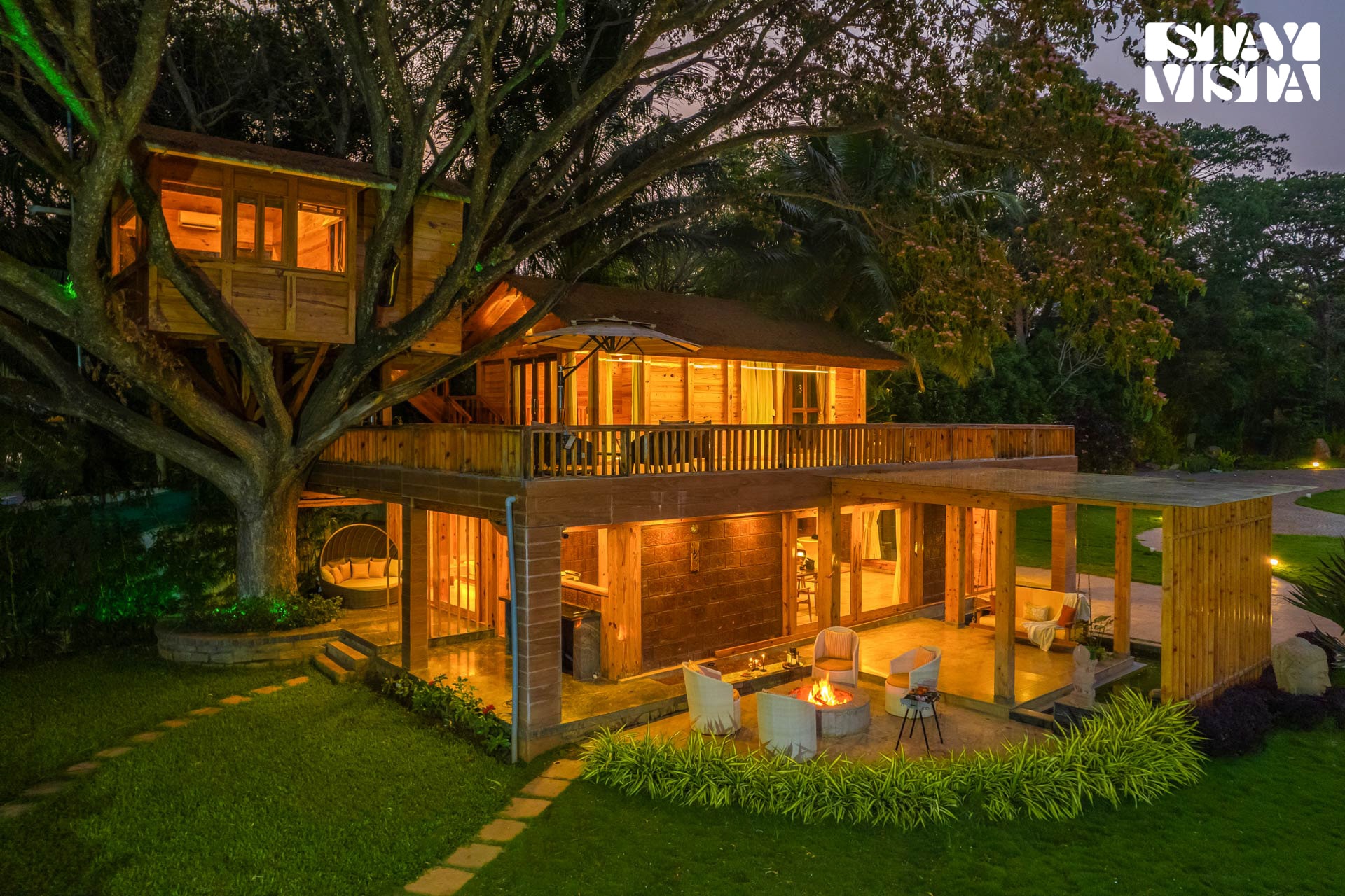 Experience a luxury safari at this paradise with a charming tree house, cosy interiors & sprawling lawns. More