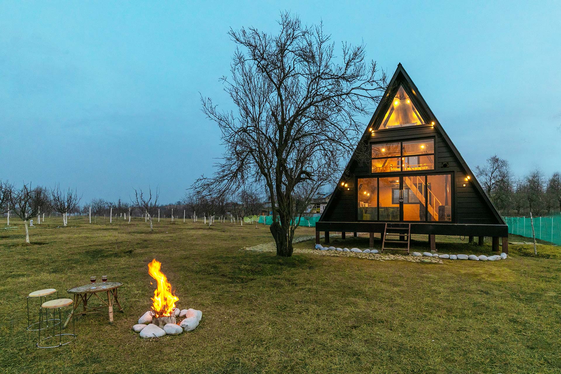 Sip on cups of Kahwa in this cosy A-Frame-style villa with intricate wooden interiors & a verdant lawn