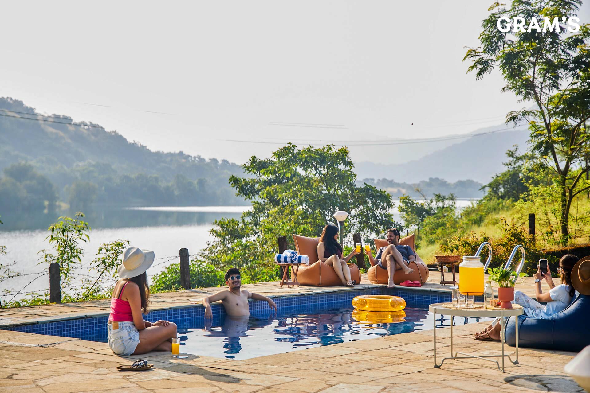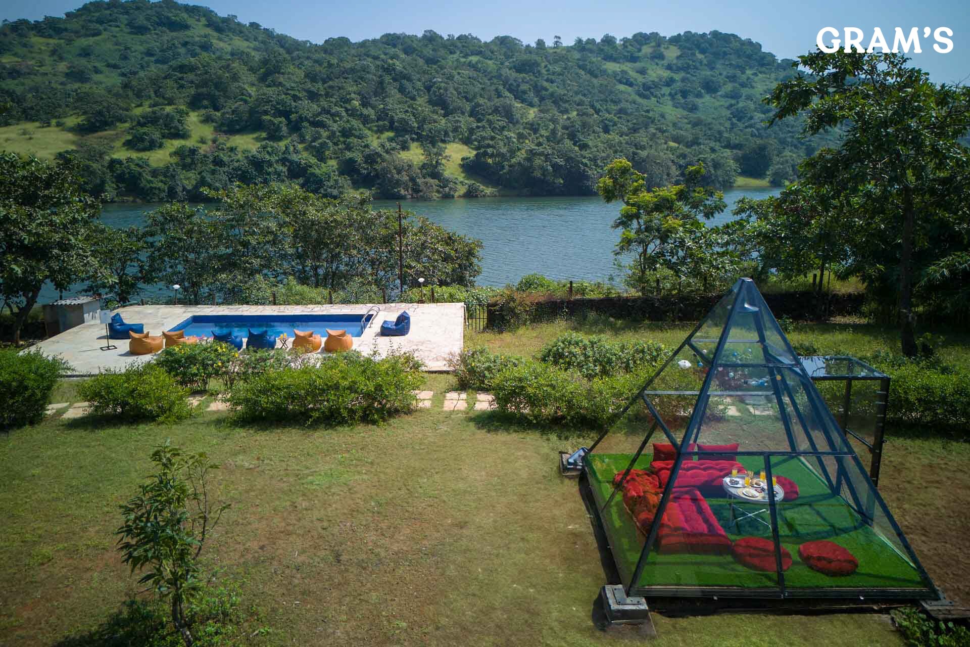 Surrounded by verdant hills and picturesque Pawna Lake, Shivom Villa 4 is a premium property offering leisure amenities like a lavish outdoor pool and beautiful lawn to relax. More