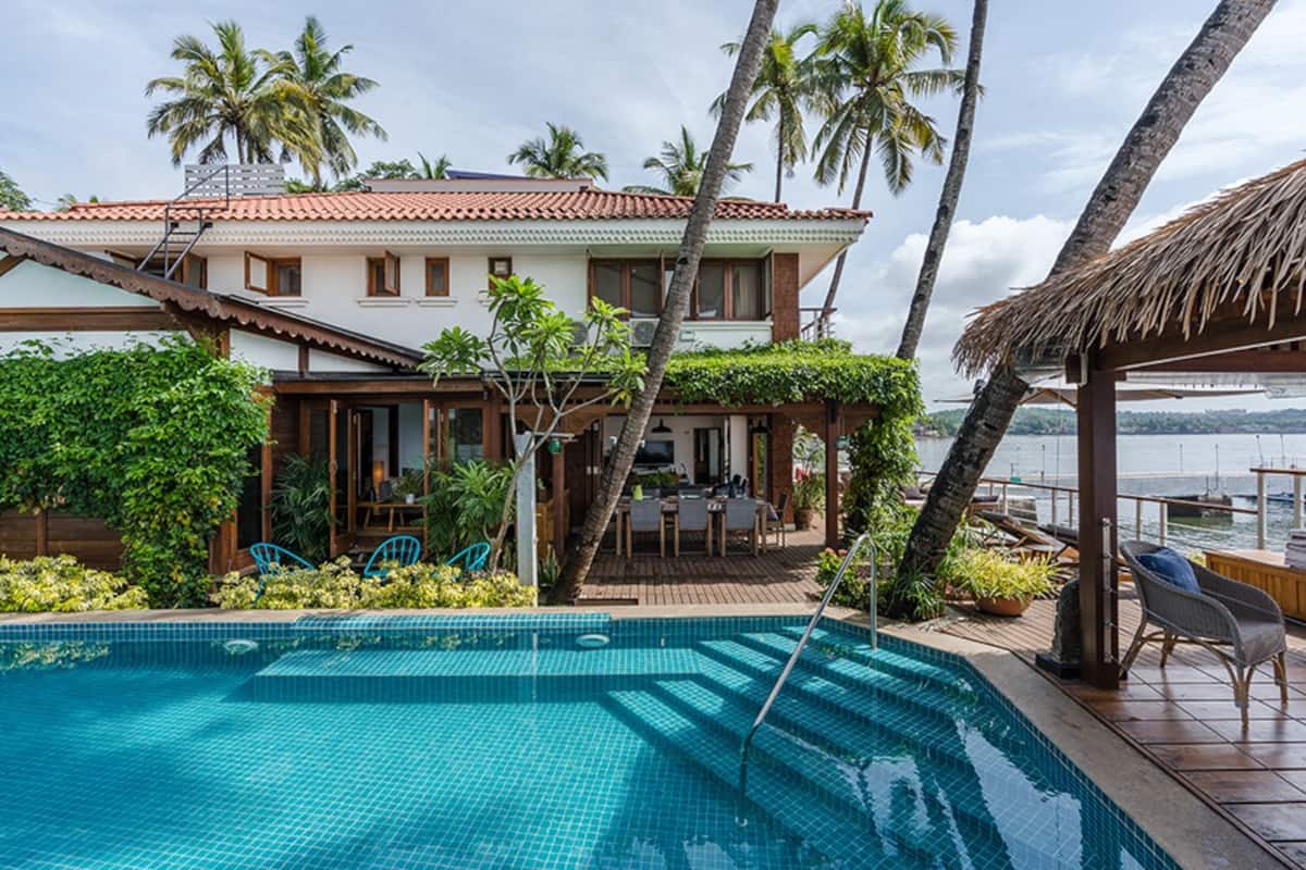 Riverfront 4 BHK villa featuring a pool, gazebo & al fresco dining