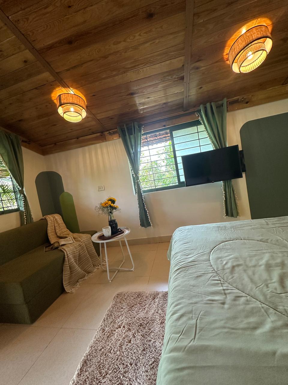 A cozy, thoughtfully designed 200 sq ft green-themed studio perfect for couples, solo travelers, and remote workers. The space f ...Read moreLogin to unlock deals & manage your bookings!