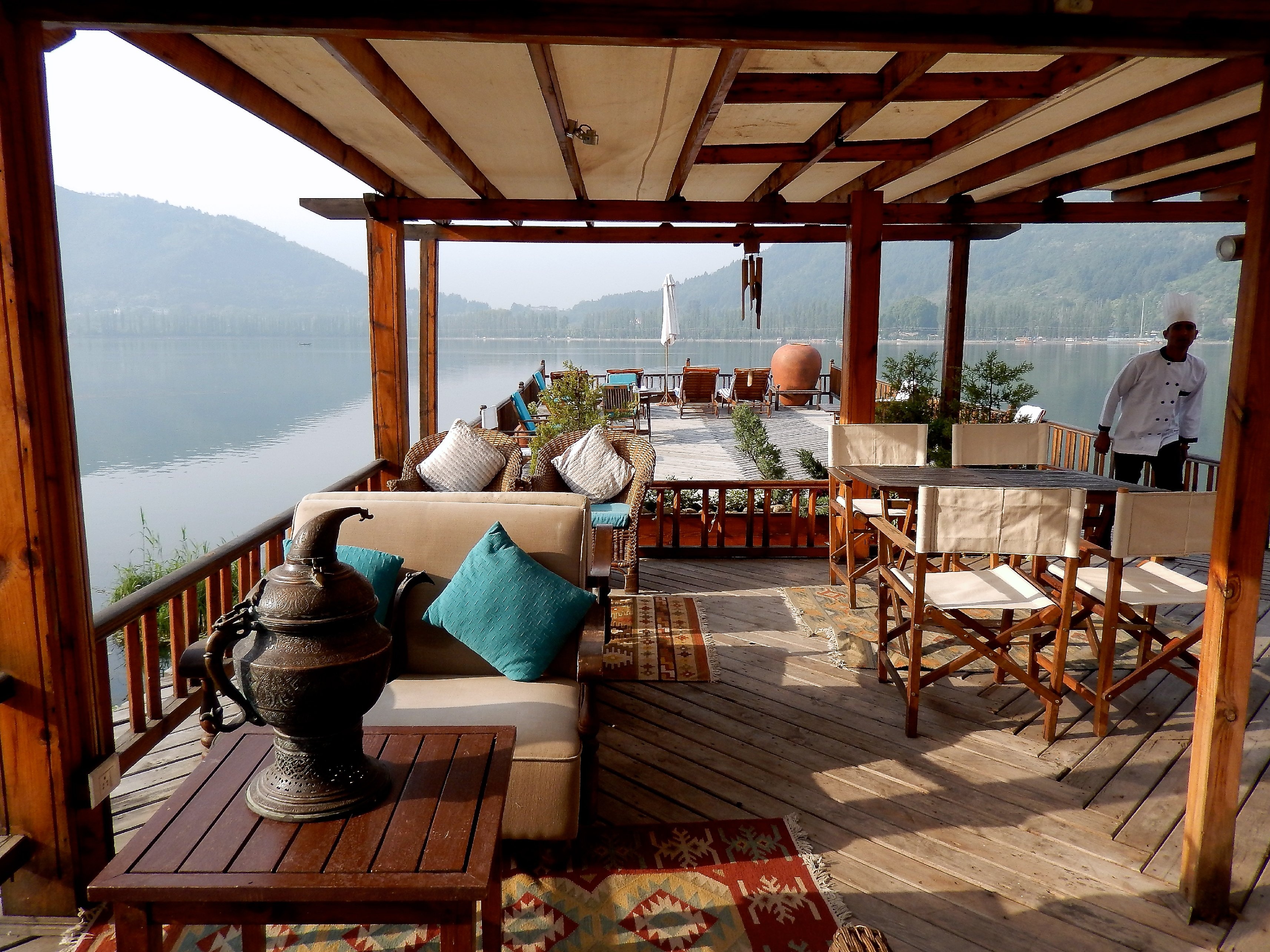 Unwind onboard a traditional houseboat in a quiet corner of Dal Lake featuring a sundeck, dining & Pir Panjal views. More