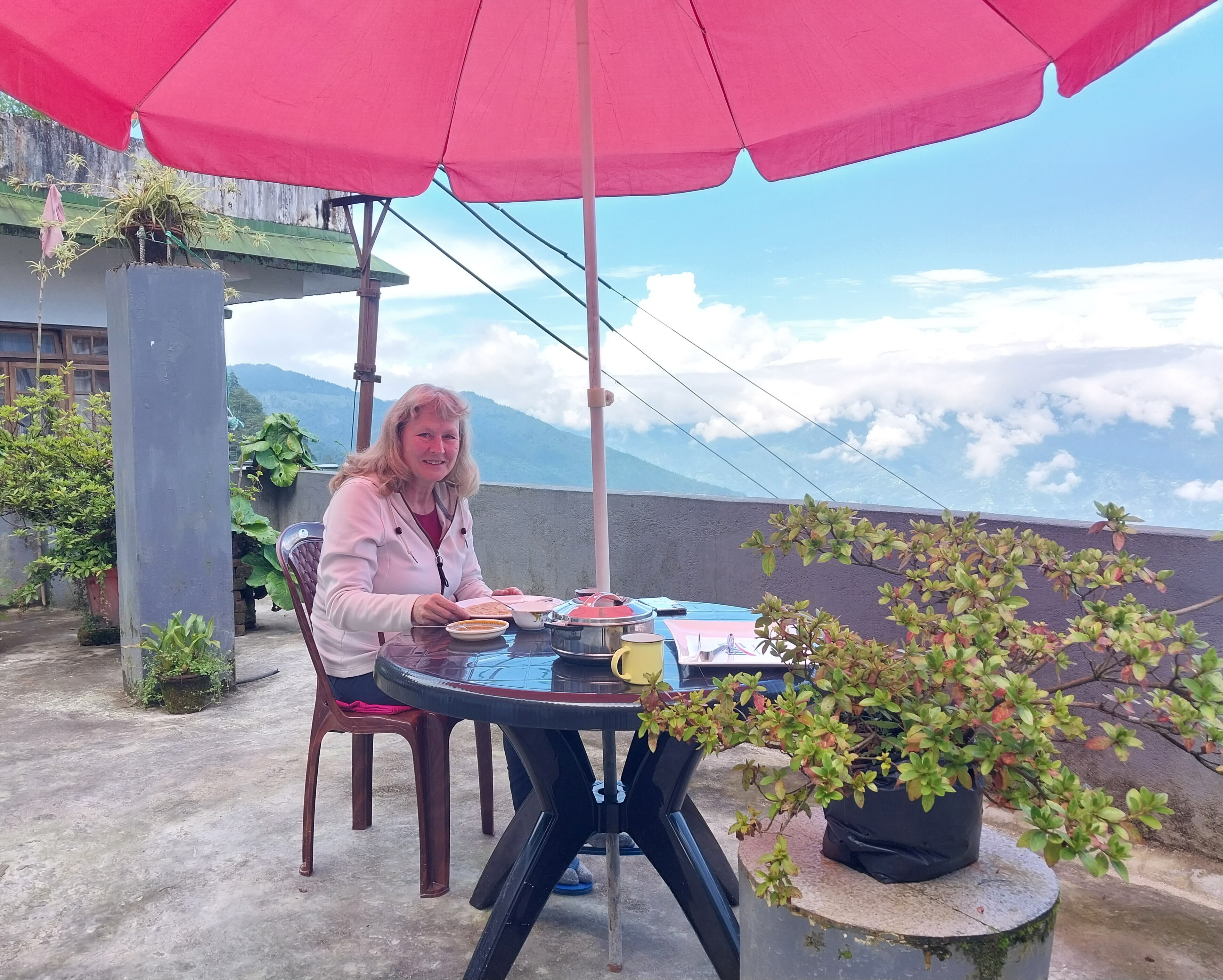 Rooms in a mountain-view homestay featuring a sit-out & dining area