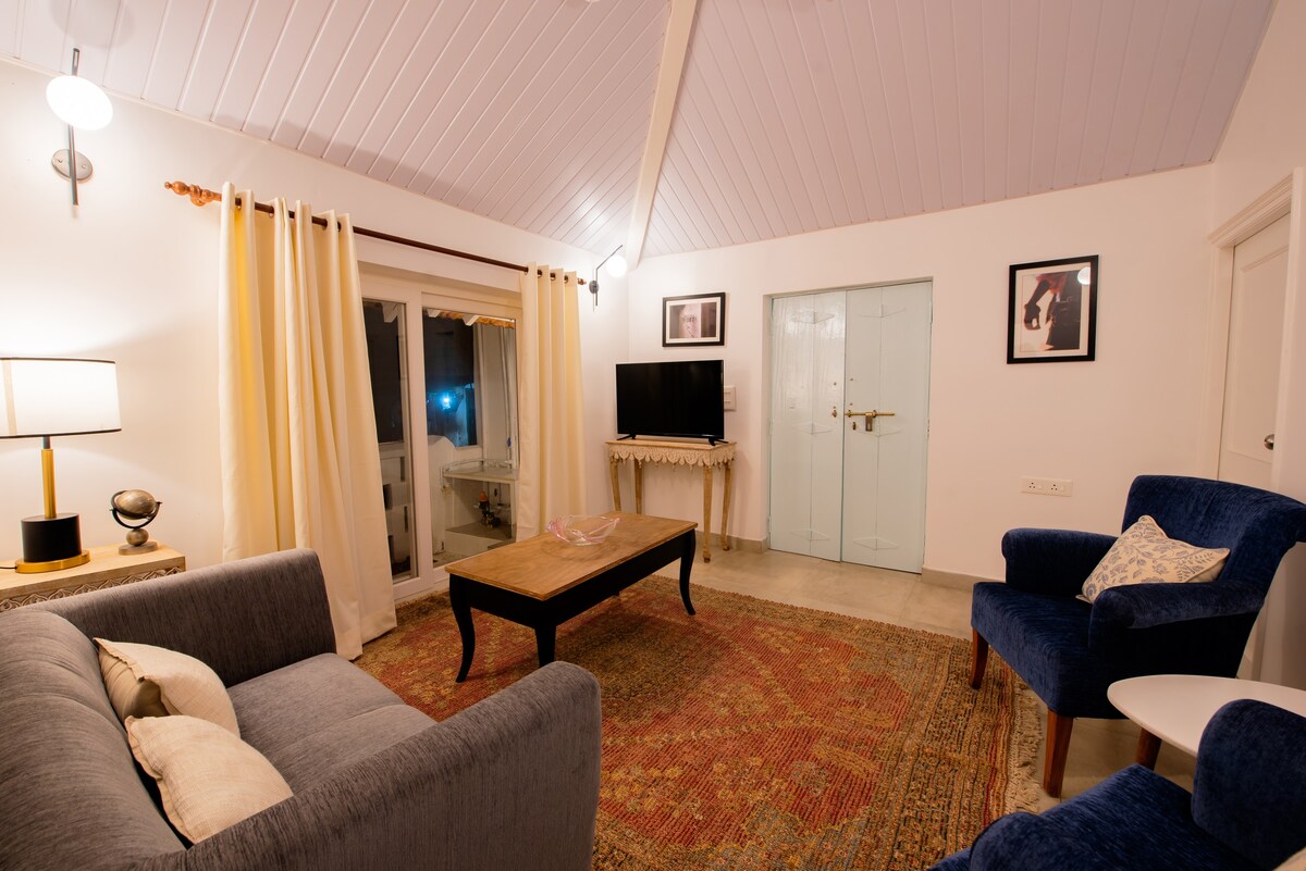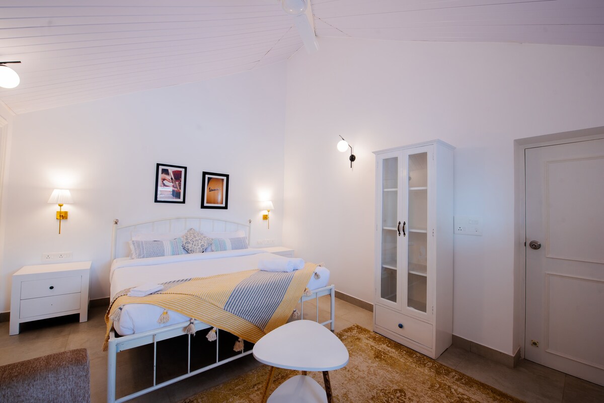 Entire 3 BHK villa with a living room, balcony, beach access & indoor games