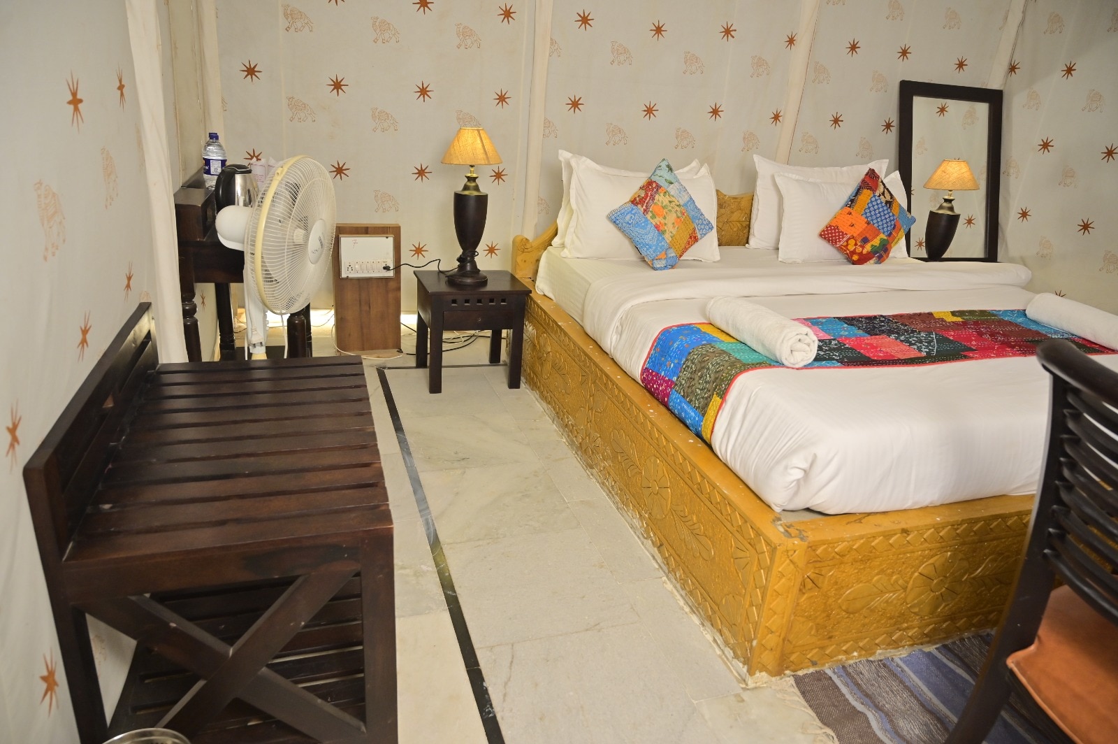 Rooms in a camp with a restaurant, camel safari & parking