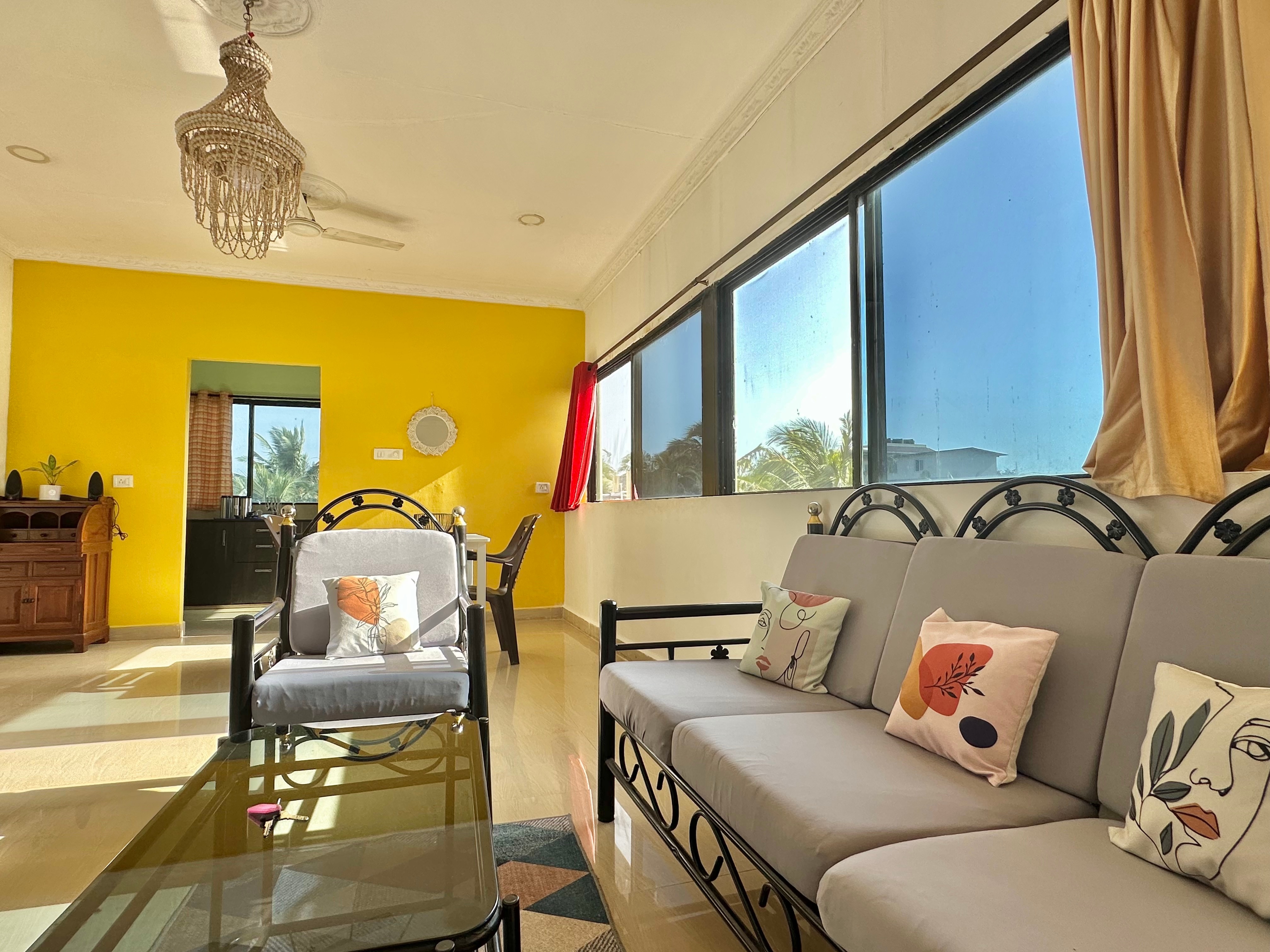 Penthouse 1 is a 2BHK airy space. Living Room: Has a TV and a couch. Wide sliding windows give you instant freshness by overlook ...Read moreLogin to unlock deals & manage your bookings!