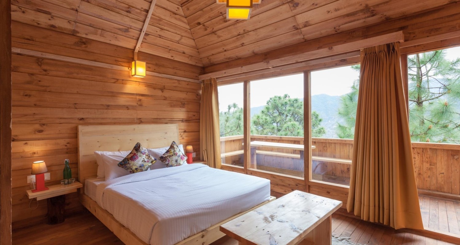Rooms in a wooden house with a kitchen, caretaker, parking & hill views