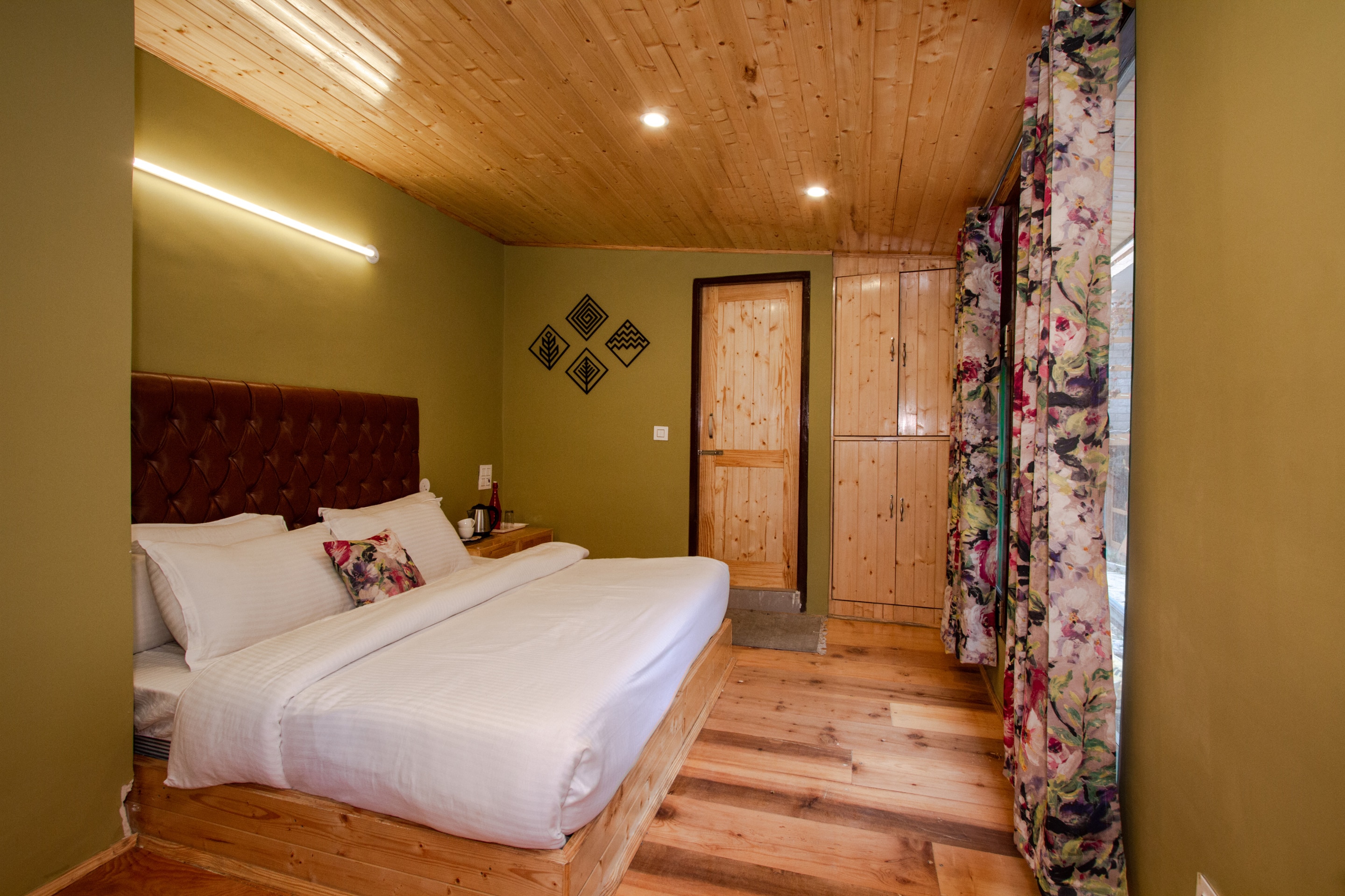 Rooms in a cosy homestay offering a living room, lawn sit-out & fireplace
