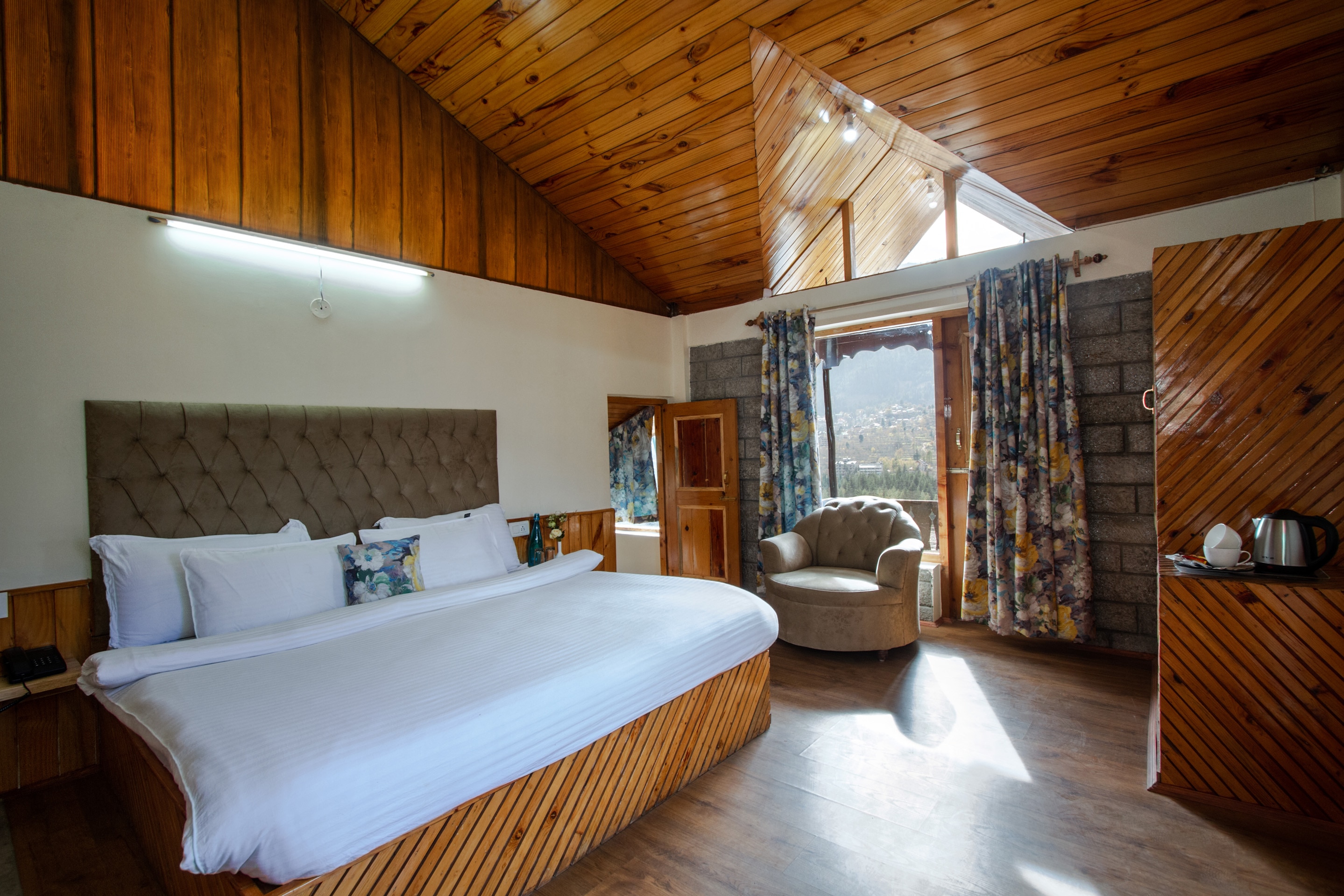 Relax at this charming stay in Manali with scenic mountain views, a sun terrace, a restaurant, bar, garden & fireplace. More