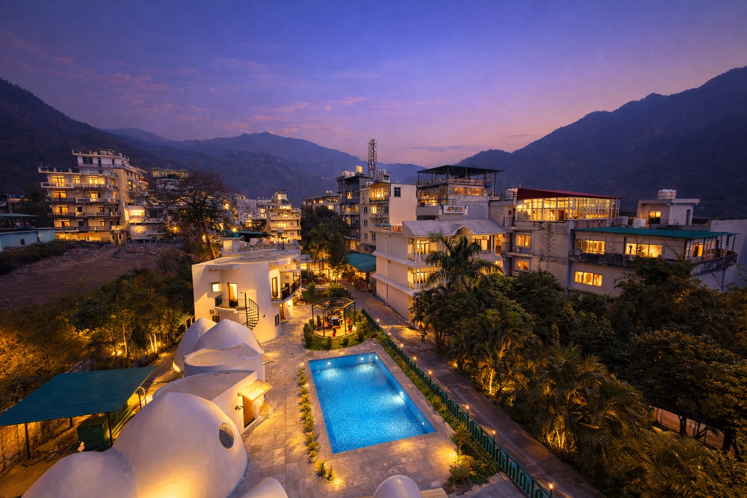 Resort is in the middle of Tapovan Rishikesh surrounded by Greenry and Swimming Pool