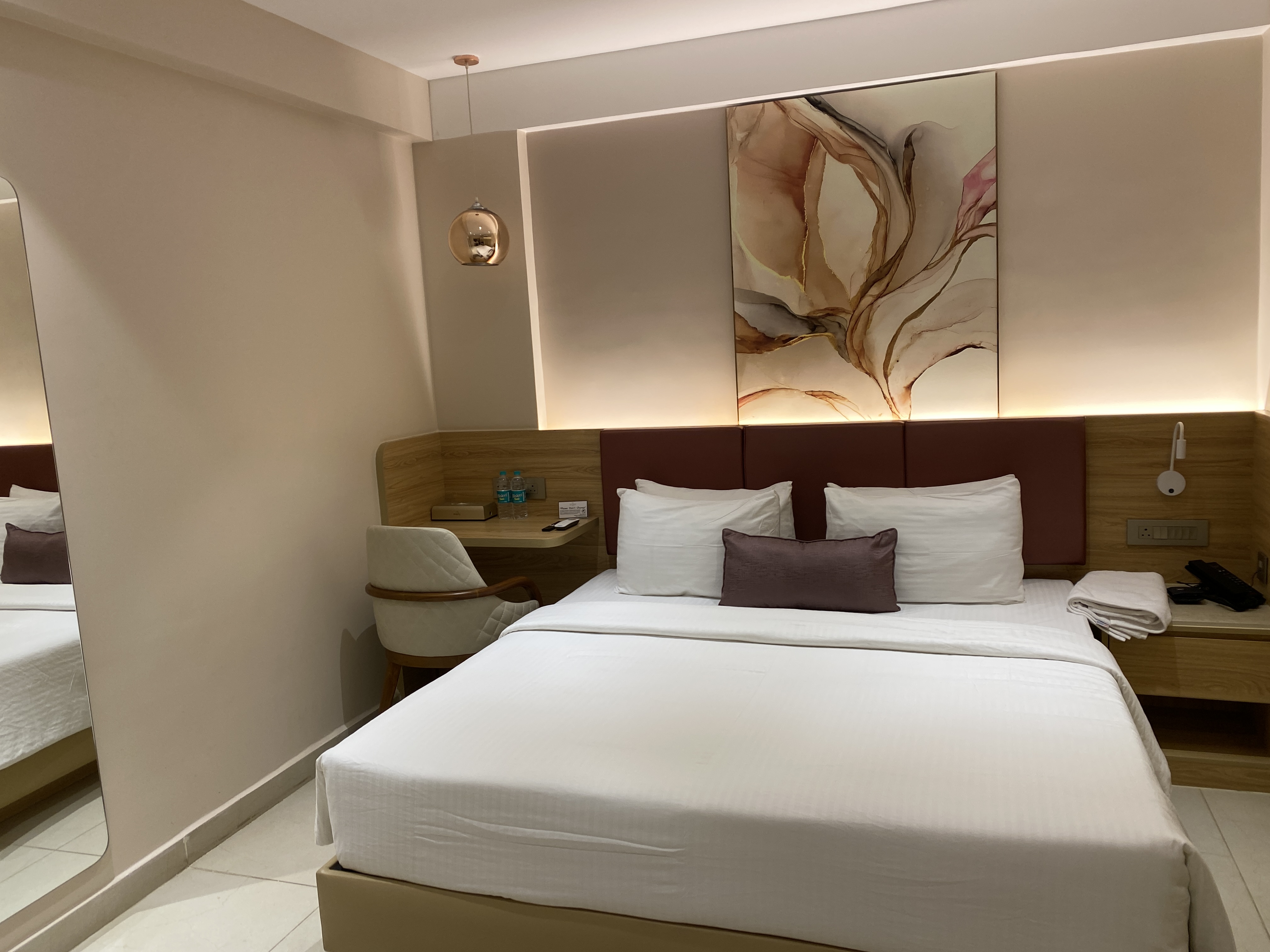 Have stayed here twice and enjoyed my stay each time. Staff is prompt and helpful. Property is new and clean. This is easily the best 3 star hotel in Mahadevpura, followed by Olive. They have a practical, usable work desk in the room (in both Premium and Executive) The mini fridge is so handy for long stays. Water pressure is excellent. Will be coming back again. My only gripe is that there can be stray dogs lingering outside the property (there is security outside though which is some consolation)