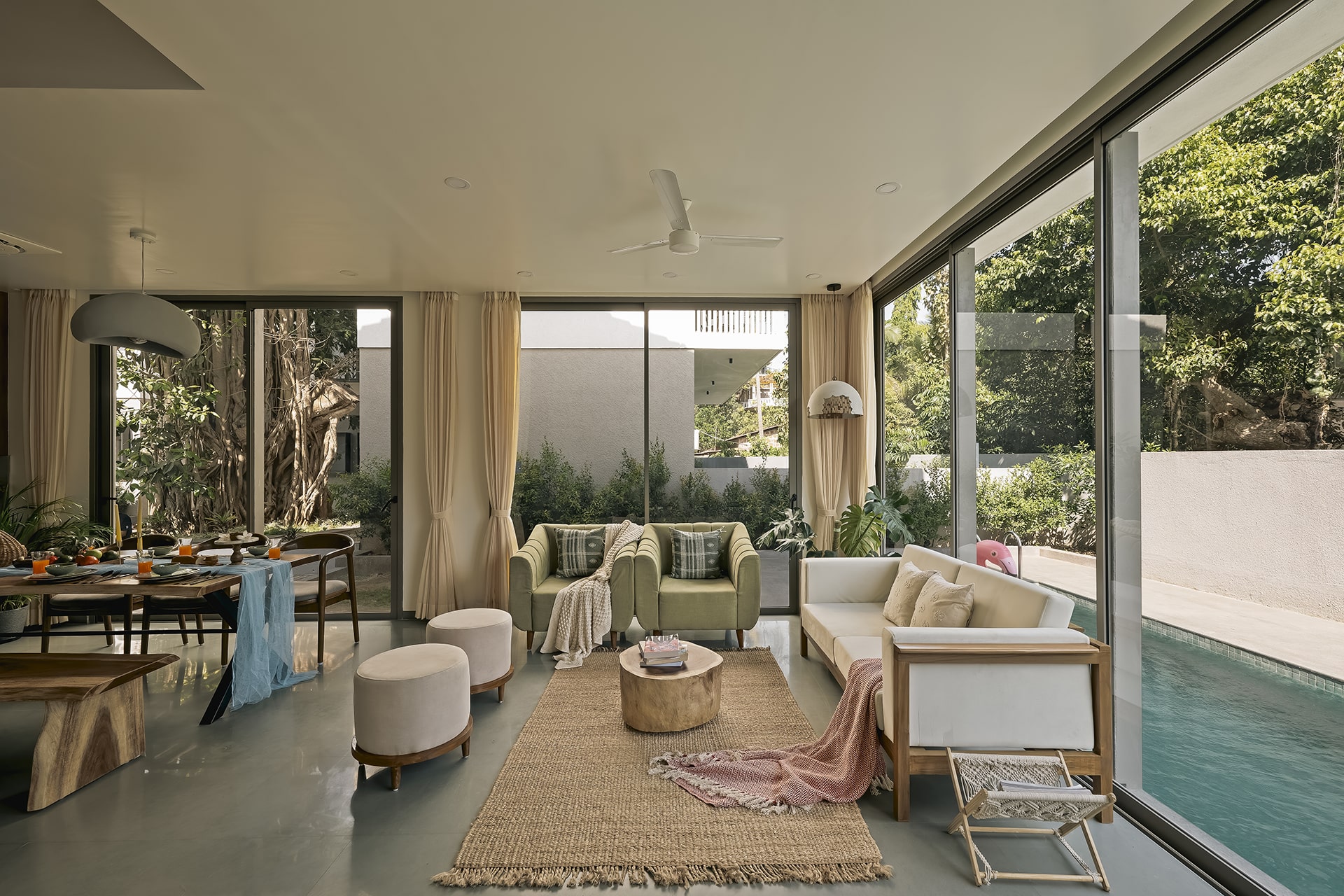Villa featuring a pool, living room, stylish decors & parking