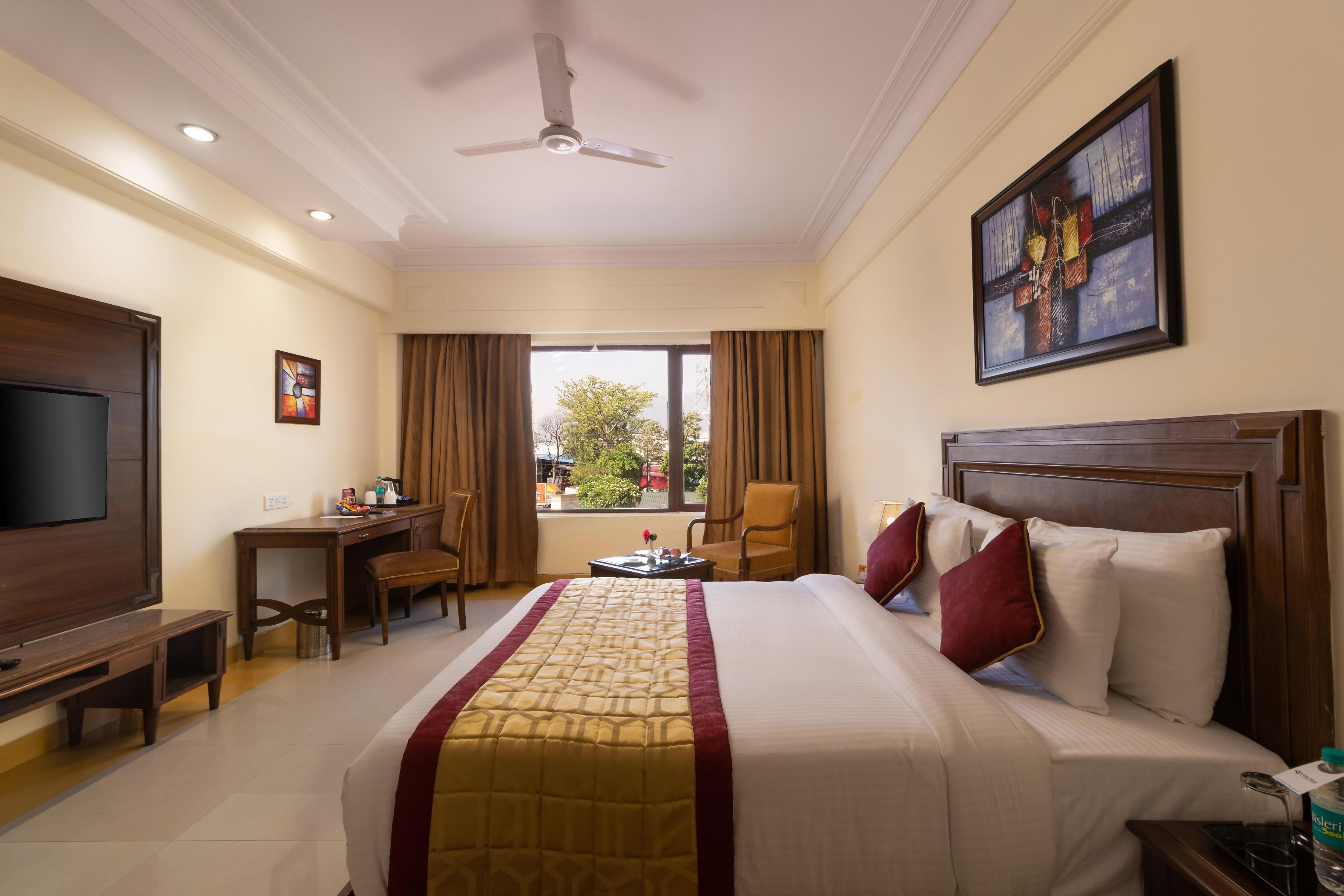 The hotel is 650 m away from NH 72 Bus Stand. The hotel is located 19.8 km from Dehradun Railway Station, 30.2km from Harrawala Railway Station, and 40.2 km from Doiwala Railway Station.