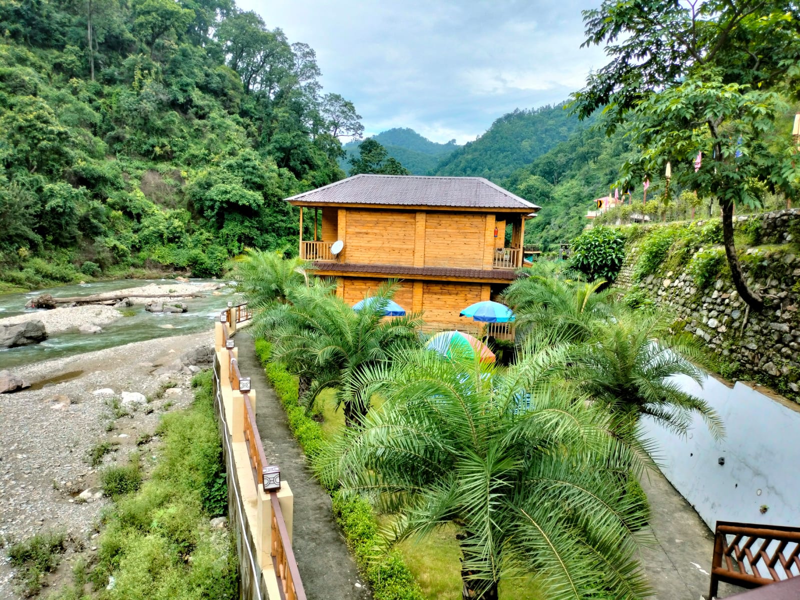 - The property offers wooden cottages, situated on the banks of the river.